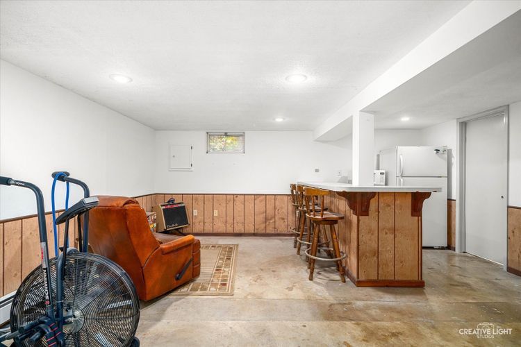 "Your updated, affordable dream home." This charming 1.5-story home has been beautifully refreshed and is ready to impress! Featuring a spacious main-level bedroom and an open floor plan that flows effortlessly into a bright, updated kitchen with stainless steel appliances, a pantry closet, and brand-new flooring - this home truly shines. Fresh paint throughout and new doors add a bright, modern feel, while the main-level full bathroom has also been tastefully updated about 10 years ago. Upstairs, you'll find a large bonus room located across the hall from the second bedroom - ideal for a third bedroom, a home office, or even a playroom or guest space. The semi-finished basement is perfect for entertaining, complete with a full bar and an additional full bath. You won't find another home in this condition and price range in South Elgin. Once it hits the market, it won't last long.