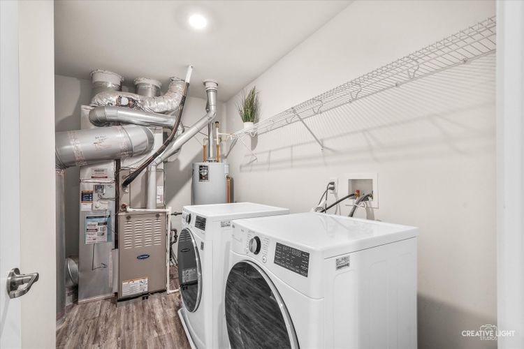 Better than new and crafted for effortless living, this stunning 3-bedroom, 2.5-bath townhome combines modern style with everyday comfort~every detail perfectly refined. From the moment you step inside, you'll feel the difference ~ this non-smoking, no-pet home has been impeccably maintained and offers a bright, open layout perfect for both relaxing and entertaining. The main level showcases elegant wide-plank flooring, plantation shutters, and a gorgeous kitchen highlighted by quartz countertops, a spacious island with shiplap accents, pantry, and stainless appliances. The newly added mudroom seamlessly combines form and function for enhanced organization. Upstairs, the primary suite boasts a custom walk-in closet and upgraded spa-like bath with dual sinks and a walk-in shower accented with natural light. Two additional bedrooms and a second full bath provide flexible space for guests or a home office. Enjoy tranquil green space views from your private patio, a 2-car finished garage, and low-maintenance living with HOA covering lawn care, snow removal, and exterior maintenance. Additional upgrades include a whole-house water filtration system, AprilAire humidifier, fresh interior paint and a new dishwasher installed in 2025. Ideally located near shops, dining, parks, bike and walking trails, U-46 schools, and SO much more! A must-see!