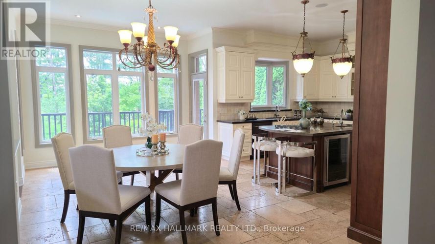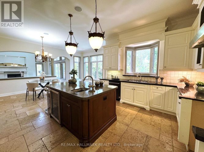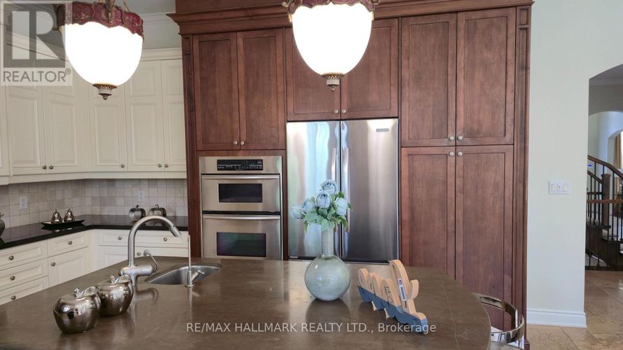 Explore This Magnificent Home Set On A Premium Lot Backing Onto A Serene Conservation Area With Very Own Private Backyard Oasis Featuring An Inground Pool, Outdoor Kitchen & Oversized 3 Car Garage. Step inside to discover a thoughtfully designed layout with soaring ceilings, expansive windows, and an elegant circular staircase that sets a sophisticated tone. The chefs kitchen is a true centerpiece, boasting a large centre island, built-in appliances, ample cabinetry, and stylish backsplash. Enjoy seamless indoor-outdoor living with a convenient walkout from the kitchen directly to the terrace overlooking the huge backyard designed for both relaxation and entertaining, featuring a large inground pool, a custom stone outdoor kitchen with built-in grill and wood-fired oven, wet bar, and a spacious terrace surrounded by mature trees and breathtaking natural scenery. Upstairs, the expansive primary retreat features a large walk-in closet with custom organizers and a spa-like 5-piece ensuite with a soaking tub and frameless glass shower. Four additional bedrooms offer comfort and flexibility for growing families. The finished lower level expands your living space with high ceilings, pot lights, large windows, and a walkout to the backyard. It includes a second full kitchen, wet bar, full-size fridge, recreation room with a second fireplace. Set on a quiet street in the sought-after Oak Ridges community, this gem is close to the serene Lake Wilcox Park & Community Centre,all amenities,public&private schools,golf courses,Hwy400,GO Station & more. Includes: Built-in stainless steel appliances: 2 fridges, cooktop, oven, dishwasher & bar fridge. Outdoor grill & fireplace, hot tub, pool liner & equipment. Central vac, alarm system, CAC & furnace. (id:26452)