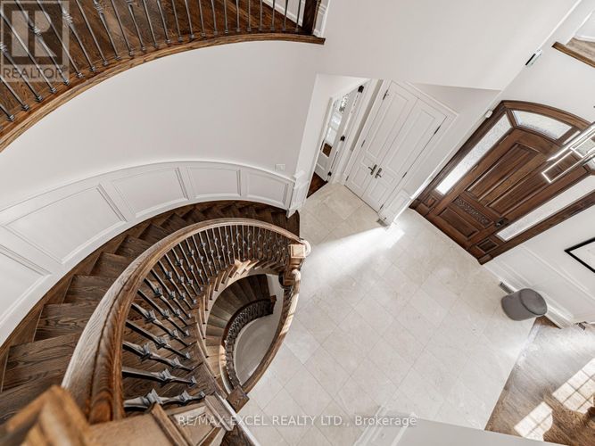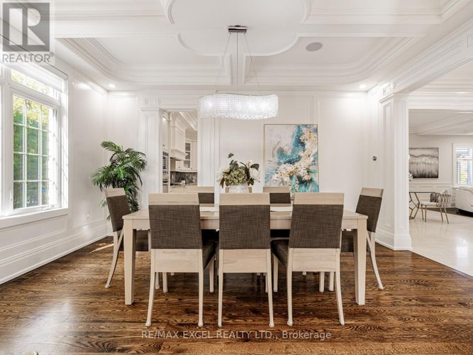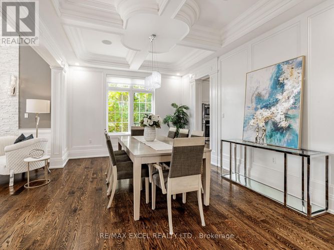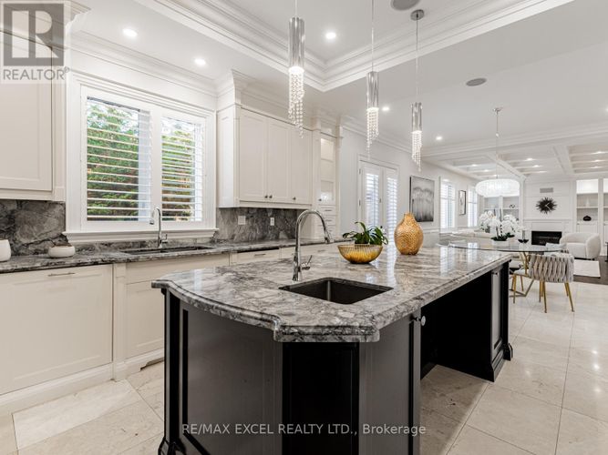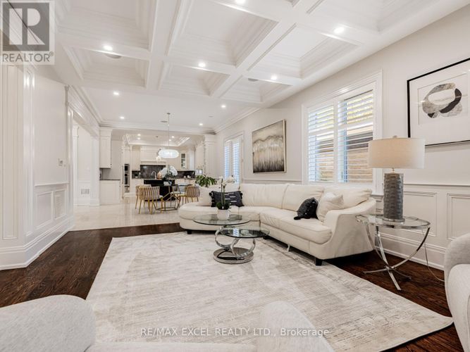 A timeless custom-built masterpiece in prestigious South Richvale, one of Richmond Hill's most desirable neighbourhoods. Set on a premium 75 ft 148 ft lot, this elegant home offers over 6,800 sq.ft. of refined living space with 10 ft ceilings on the main floor and 9 ft ceilings on the second floor and basement, blending classic architecture with modern comfort.The grand 20 ft foyer welcomes you with Italian marble flooring, a dazzling crystal chandelier, and an octagonal dome skylight with LED cove lighting. Flowing from the foyer, the living room features hardwood flooring, soaring ceilings, and a striking two-storey stone feature wall that radiates warmth and sophistication.The formal dining room shines with hardwood floors, pot lights, and a detailed coffered ceiling - perfect for elegant gatherings. The family room is spacious and inviting, with a waffle ceiling, fireplace, and custom built-in shelving - a perfect place to relax or entertain. The office, quietly positioned nearby, includes custom cabinetry and a walkout to the patio, offering an ideal setting for work or study.The gourmet kitchen stands at the heart of the home, showcasing a large center island, sleek cabinetry, and premium built-in stainless steel appliances. A bright breakfast area opens to a custom wood deck, seamlessly connecting indoor and outdoor living.Upstairs, the primary suite is a true retreat, featuring a spa-inspired 7-piece ensuite and a custom walk-in closet. A second ensuite bedroom provides privacy and comfort, while two additional bedrooms share a semi-ensuite, each enhanced with pot lights and organized closets.The finished walk-up basement offers a home theatre, custom wet bar, fitness room, and nanny/guest suite. Professionally landscaped front and side yards complete this exceptional residence, where timeless design and fine craftsmanship define the essence of luxury living. (id:26452)