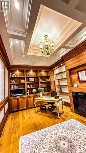 A Timeless French Château Estate Masterfully Crafted From Imported Indian Limestone, Set in the Prestigious Enclave of South Richvale. (85' x 255' ~ 21,670 Sq. Ft)Builder's Own Custom Masterpiece* Aprox 12,000 Sq Ft/L. A Fusion of Architectural Artistry &Uncompromising.Every inch of this palatial residence features heirloom-quality Russian walnut, craftsmanship-from sculpted doors and wall panels to coffered and triple-cathedral Ceilings-each Detail Custom-Built to Perfection For the Builder's Own Family.Breathtaking *24-ft Grand Foyer,Crowned W/A Swarovski Chandelier(Motorized Lift)+Dramatic **28-ft Dome Skylight,Defines Its Grandeur.3-level Elevator, Smart system+Designer Lighting & Built-in Speaker System in All Zones.The Main Fl Ceilings 12-ft ,13-ft 2nd floor ,a Distinguished Walnut-clad Office With Waffle Ceiling,and 2 Elegant Powder Rooms W/Onyx Counters&Swarovski Faucets.Chef-inspired Downsview Kitchen w/Custom Cabinetry,A Showpiece Walnut Island,Ultra Luxury Built-in Appliances, an Adjoining Servery&Butler's Room Opens to Elegant Living&Dining Rooms W/French chandeliers & Grant Gas Fireplace Detailing.A Circular Walnut Staircase Wrapped With 3d White Natural Stone on Wall Unites 3 Levels.Second Flr: 5 Lavish BedRms With13-ft craftsmanship Wood Cathedral Ceilings, Heated-floor en-suites & Walk-in Closets w/light sensors. The Primary Suite Offers a Sitting Area,Balcony view Over the pool & Garden,Opulent Spa-inspired 12-pc Ensuite W/steam Sauna,Dual Showers & Bespoke Walnut Vanities, Elegent Bronze chandelier above the Soaking tub with OverView the Garden.Boutique-style Dressing Room Evokes a Couture Gallery With Glass Accents &Crystal Chandeliers. 2 Furnace and 2 Ac.Radiant Heated Floors,Walnut BarLounge,Huge recreation1800-bottle Wine Cellar w/Glassdoor&tester room,Cinema-Quality Home.Door Glasses, GymMirror &Nanny room w/en-suite.custom XFrench doors,with W/Out to Gardens Resort-style Backyard: Concrete +Heated/Salt/Pool W/ Waterfall,outdoor shower,Hot Tub