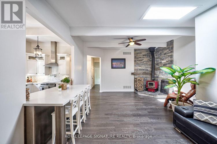Location, location, location! Step into more than 4,000 sq. ft. of renovated luxury on a private 1-acre lot complete with an indoor pool and commercial zoning for incredible future potential. This ranch-style bungalow wows with an open-concept design, beamed high ceilings, and a custom kitchen featuring quartz countertops. The great room steals the show with a custom stone surround and cozy wood stove, while the layout offers 3 bedrooms and 3 bathrooms, including an updated 3-pc ensuite with heated floors. Practical perks? A large mudroom and a double garage. Outside, the backyard is an entertainers dream playhouse, fire pit, and a full garden. Your own private oasis. With countless upgrades inside and out, this property blends luxury living with exciting possibilities. Indulge in refined living!!! (id:26452)