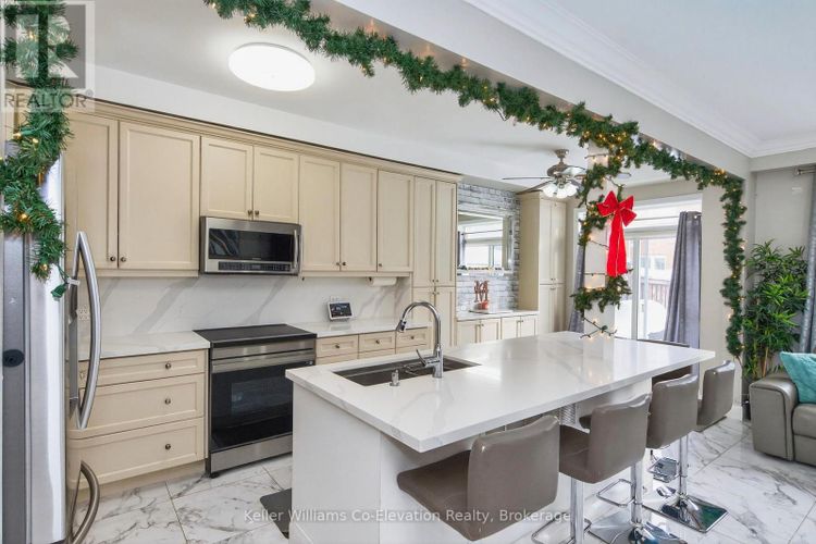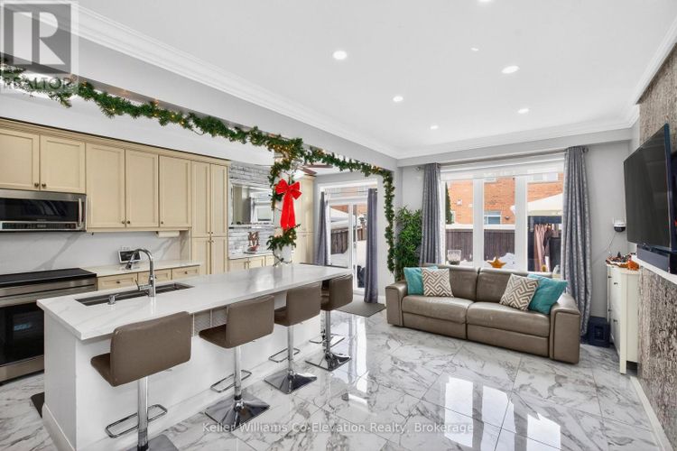 Beautifully updated corner-unit townhome located in a sought-after, family-friendly community in Bradford; close to parks, schools, and green space. This turnkey home showcases quality upgrades throughout, with an emphasis on timeless stone finishes and thoughtful design. From the moment you enter, you are welcomed by the comfort of in-floor heating throughout the main level. The open-concept kitchen and living area are both stylish and functional, featuring stone countertops, a large breakfast bar with ample seating, abundant cabinetry -perfect for everyday living and entertaining. The kitchen offers a walk-out to a private backyard patio complete with an outdoor kitchen and hot tub, creating an ideal setting for hosting family and friends. The main floor also includes a convenient two-piece powder room and direct access to both the garage and basement. Upstairs, the spacious primary bedroom features a walk-in closet and a fully upgraded ensuite bathroom. Two additional well-appointed bedrooms, a full bathroom, and second-floor laundry, perfect for growing families. The fully renovated basement adds exceptional value, offering an additional living space, a three-piece bathroom, a small kitchenette, and a separate entrance from the garage. This versatile space is ideal for an in-law suite, guests, or extended family. Additional highlights include the elegant use of stone countertops throughout the home, an extra parking space at the front, and pride of ownership evident in every detail. Ideally located close to schools, parks, downtown Bradford, and with easy highway access, this home truly offers a refined lifestyle in a prime location. Do not miss this opportunity to enjoy modern comfort, quality finishes, and exceptional convenience. (id:26452)