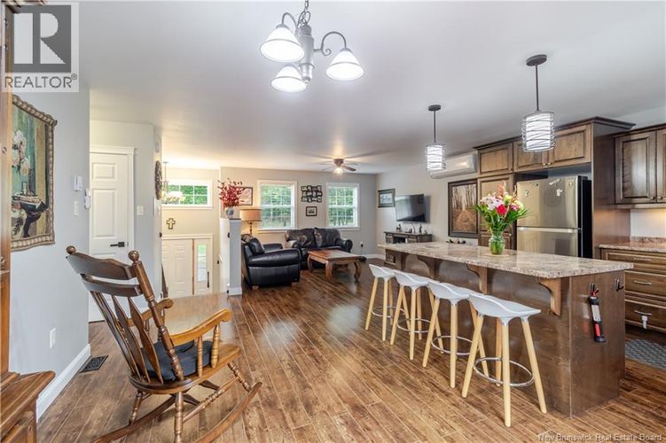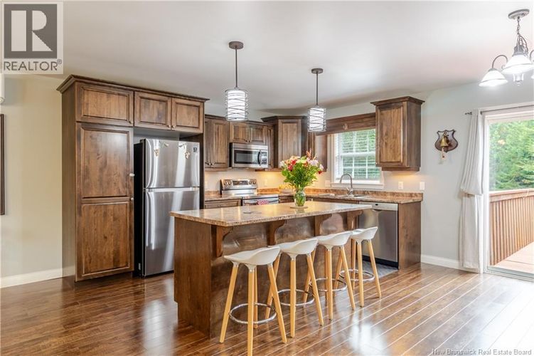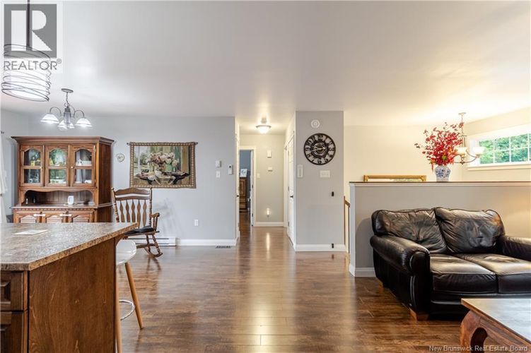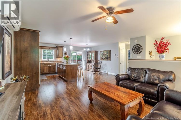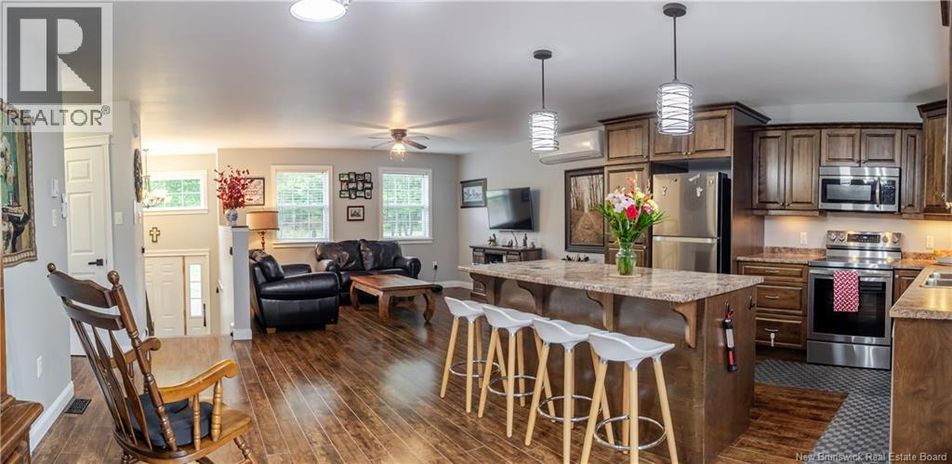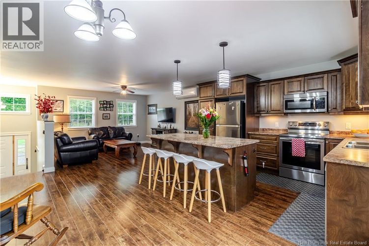 Country living at its finest-just minutes from Fredericton! This custom-built split entry with recent upgrades, offers a perfect blend of comfort, style, and a touch of nature. The open-concept main living area overlooks a private backyard with a spacious deck and a shallow pond - a tranquil feature that makes this property special. The kitchen shines with beautiful dark cabinetry, a large island, and stainless steel appliances. The principal bedroom includes generous closet space and a cheater door to the main bath, and the second bedroom features double windows for abundant natural light. The lower level features an oversized bedroom with large windows, a second bathroom, a spacious family room with a WETT-certified woodstove, along with a dedicated laundry area and utility room offering ample storage. Durable laminate and water-resistant vinyl flooring make this home ideal with kids and pets. Step outside and youll find plenty of space and convenience - a handy storage shed, large driveway and a generous garage that can accommodate about 10 vehicles. RECENT UPGRADES YOU'LL LOVE: Freshly designed landscaping in the front and back, a brand-new energy-efficient heat pump for year-round comfort, and a spacious heated 28x28 double-car garage (2021) with 220V powercomplete with a generator for added peace of mind. Worried about winter driving? No need the government ensures that Route 628, the main road, is plowed and maintained regularly for safe and reliable access. (id:26452)