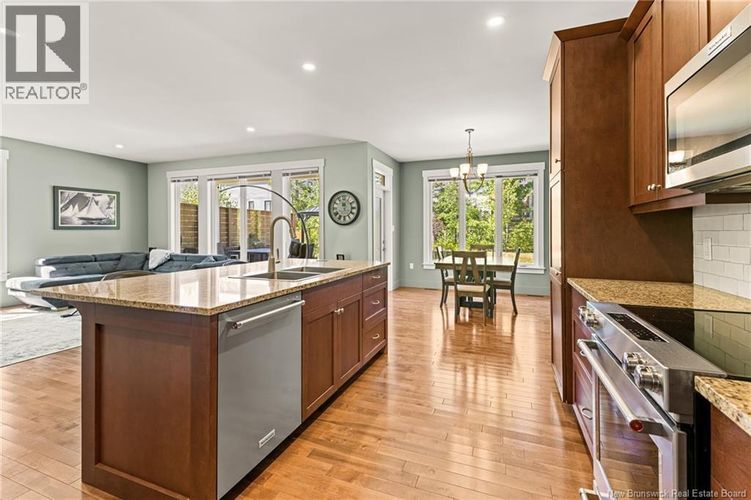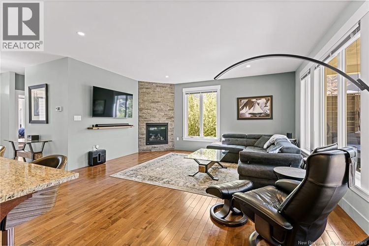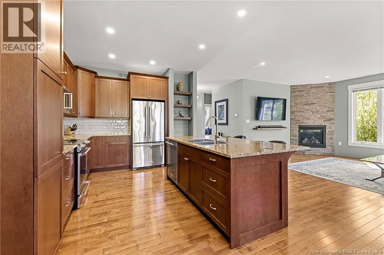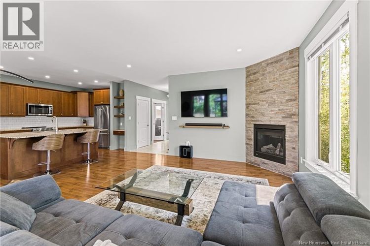 EXECUTIVE BUNGALOW | 4 BEDROOMS | 9ft CEILINGS | ENSUITE BATHROOM | FINISHED BASEMENT | Nestled on a quiet CUL-DE-SAC in one of Dieppes most welcoming neighbourhoods, this beautifully designed bungalow offers comfort, space, and functionality. Inside, a generous FOYER opens to a bright, OPEN-CONCEPT main floor where natural light fills the living room with its custom FIREPLACE. The kitchen is a cooks dream, featuring ample cabinetry, a WALK-IN PANTRY, granite countertop, eye-catching backsplash, and a large ISLAND with extra seating. The dining area overlooks the LANDSCAPED BACKYARD and opens to a COVERED DECK with an extended GAZEBOideal for relaxing or entertaining. The main level includes a spacious PRIMARY SUITE complete with an ENSUITE and WALK-IN closet, TWO additional bedrooms, a full bathroom, and a SEPARATE LAUNDRY room. Downstairs is FINISHED and adds incredible versatility with a large family room, FOURTH BEDROOM, exercise room or office space, a 4-pcs bathroom, and additional storage. This home also features a double attached garage, FULL CENTRAL HEAT PUMP system, a central vacuum system and a double paved driveway, with gravel extension for extra parking. A complete and WELL-MAINTAINED propertyready for its next chapter. (id:26452)