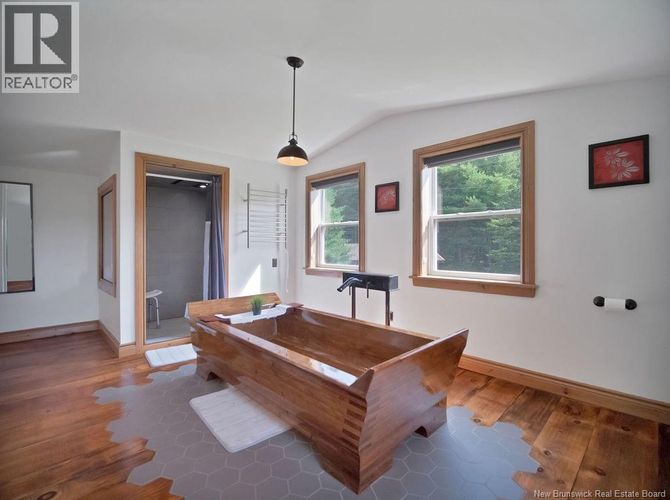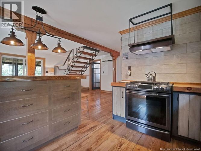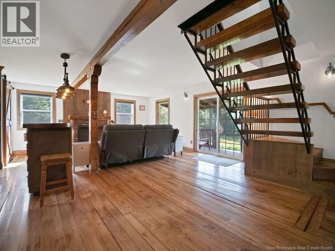If youre looking for peace and quiet or a rental property that comes fully furnished this place has it all. The main floor has an open-concept kitchen and living room, a 3-piece bathroom with laundry, and a good-sized bedroom. A custom raw-edge wood staircase takes you upstairs to the master bedroom and ensuite, which includes a soaker tub, stand-up shower, walk-in closets, and a small deck off the bedroom. Relax on the covered front deck and enjoy the beautiful views, wildlife, and amazing sunsets. You can watch eagles, herons, and hawks flying overhead, take a calm canoe ride on the river, or hop on the West Branch Back Road and ATV trails that lead right to Bass River for lunch and a drink at Dannys Pub before heading back. Kayaks are easy to launch, whether you want a gentle paddle to the right through the brook or a more adventurous route to the left into the St. Nicholas River, which connects to the Richibucto River. You can even kayak all the way to Rexton for a full-day trip. This property offers privacy while still having great neighbours. Sit by the water with a good book and enjoy the peace and quiet with no distractions. Property is being SOLD FURNISHED (all furniture inside the home is included; items in the shed are not). Call your favourite REALTORĀ® today to book a showing (id:26452)