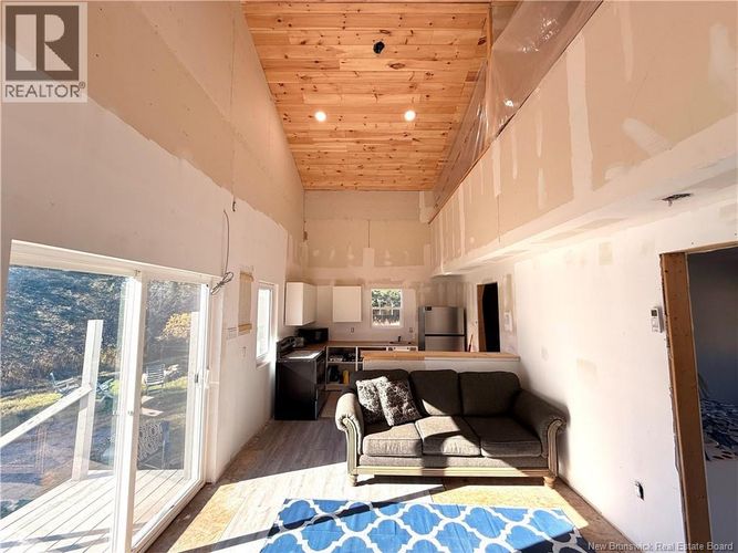 This hidden gem awaits your final touches to be a wonderful cottage or year round home. With a long private driveway, this house provides privacy while still being close to amenities. Close to the Fundy Trail and the caves in St. Martins, and less than an hour from Saint John, theres lots to explore nearby. Nestled on almost 1.5 acres of mature land, the possibilities are endless! On the main floor youll find a lovely open concept space with vaulted ceilings, full bath with laundry and primary bedroom. Upstairs youll find two loft-style bedrooms and a roughed-in half-bath. Most of the heavy lifting has been complete, allowing you to turn this into your perfect piece of paradise. The property also has levelled space for trailers, perfect for family to come and set up camp, or rent out the space to visiting tourists. Great AirBNB rental potential as well. All appliances are less than 6 months old. (id:26452)