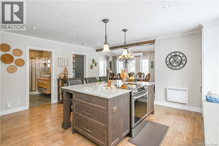 Welcome to 546! Combining charm and a unique style, this beautiful home is the ideal choice for family living. Located in the lovely village of St-Simon, just 8 minutes from downtown Caraquet, it offers both tranquility and close proximity to essential services, shops, and entertainment. On the main level, youll find a spacious and welcoming entrance, a stunning bathroom with heated floors, and a laundry area with a pantry. The modern and functional kitchen is truly a dream space, featuring quartz countertops and an island, perfectly designed for cooking and entertaining. The adjacent dining area flows seamlessly into this inviting living space, while a large, bright living room with a propane fireplace on the other side invites relaxation. Upstairs, the home offers a primary bedroom with a walk-in closet, an additional bathroom, and two spacious bedrooms, ideal for family or guests.The basement features a cozy living room with a wood stove, a family room that can be customized to suit your needs, a cold room, a storage room, and a mechanical room. Set on a beautifully landscaped one-acre lot, the property includes a double garage, two sheds, and a greenhouse, offering plenty of space for storage and outdoor projects. With its warm ambiance and unique character, this home is exactly what youve been looking for. (id:26452)