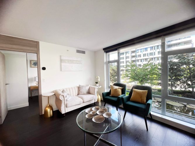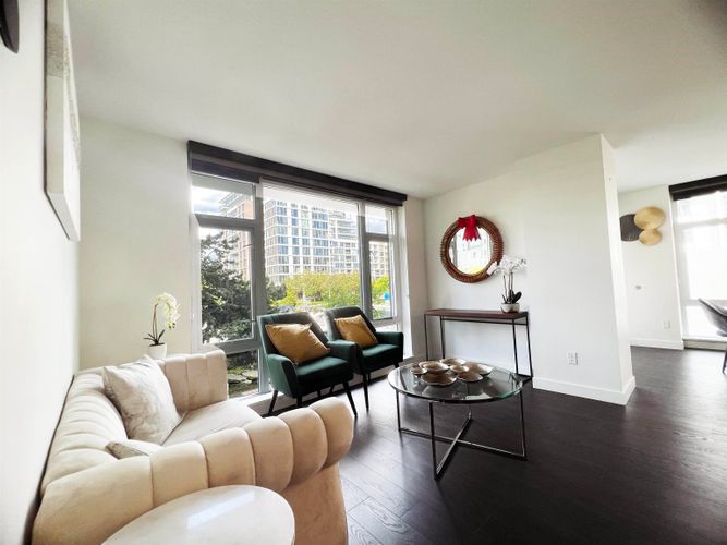 CONCORD GARDENS. Air conditioning, Separate 2bed 2Bath,plus den Conner unit with garden view. Spacious living and dining area, floor to ceiling window give plenty of natural light. Functional layout no waste of space. The luxury Diamond Club amenities including indoor swimming pool, sauna, bowling, basketball, gym, golf simulation, private theatre and karaoke room, etc. Step to T&T supermarket, Capstan skytrain station, and restaurant. l EV parking+ locker. Open house Sat&Sunday Nov 8 &9 @ 2-4pm