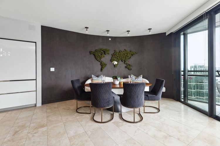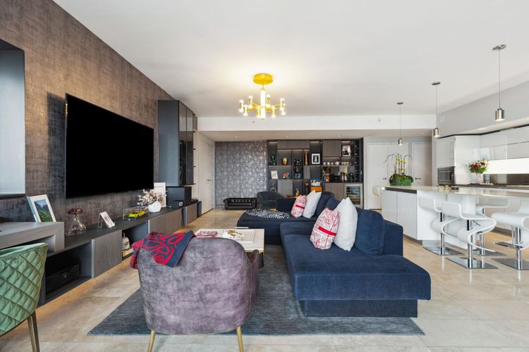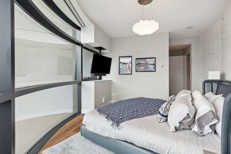 Live in art. Own a legacy. Designed by Foster + Partners, this 1,754 SF Jameson House residence offers cinematic panoramic views of mountains, water, and city from curved floor-to-ceiling windows. West-facing with stunning sunsets and LED-lit millwork throughout. Features include heated/cooled travertine floors, Sub-Zero & Gaggenau appliances, Italian Molteni&C cabinetry, Revox surround sound, custom bar, bespoke office, and textured designer finishes. Spa-inspired bathrooms with floating toilets and designer sinks. Primary suite with curved glass walls and Molteni&C closets. YSL-inspired display shelving, custom shoe closet, and backlit living wall. 2 parking. 24/7 concierge. Steps to seawall, fine dining, and luxury shops.