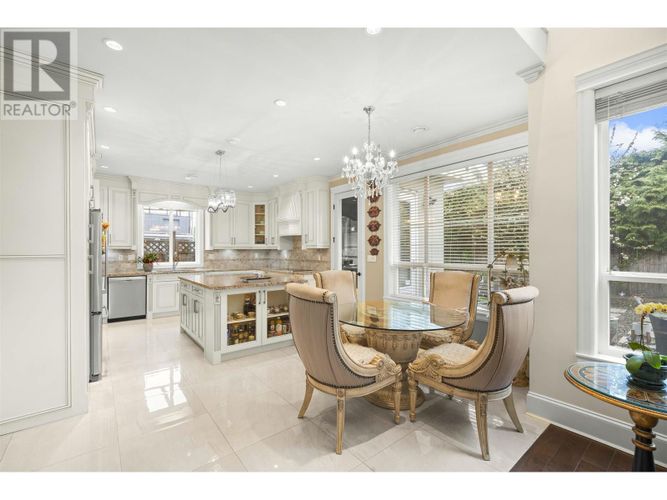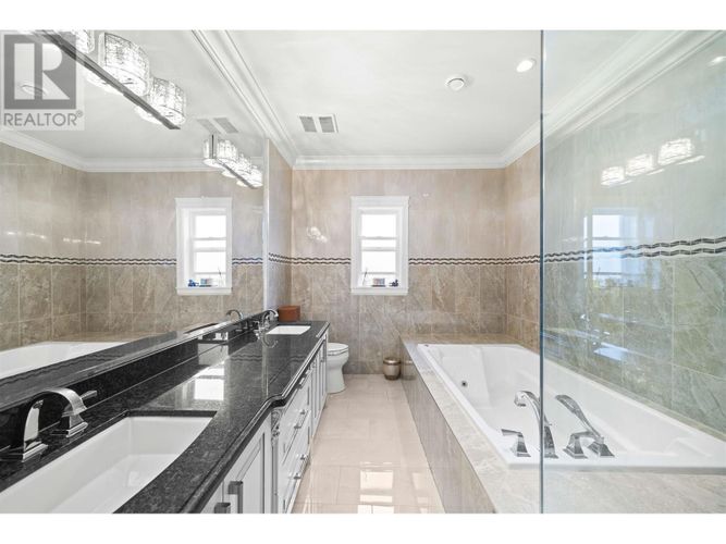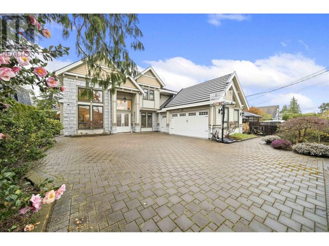 Luxurious custom-built home located in one of Richmond’s most desirable & quiet neighbourhoods—Woodwards! Sitting on a 7,200 sqft lot, features 5 ensuite bed, 6 baths plus a media room or private office. Main-floor media room can convert into a private rental suite-ideal mortgage helper w/ separate entrance. It features double-height ceilings, grand marble foyer, crown moulding, crystal chandeliers, hardwood floors, radiant heating, HRV, & A/C throughout. Open-concept layout w/ gourmet and wok kitchens, equipped with premium Miele appliances. Enjoy a fenced private garden, 3-car garage, and powered gate. 10-min walk to top-ranked public & private schools including Errington Elementary ,Steveston-London Secondary & Richmond Christian School. Only a 5-min drive to Richmond Centre.