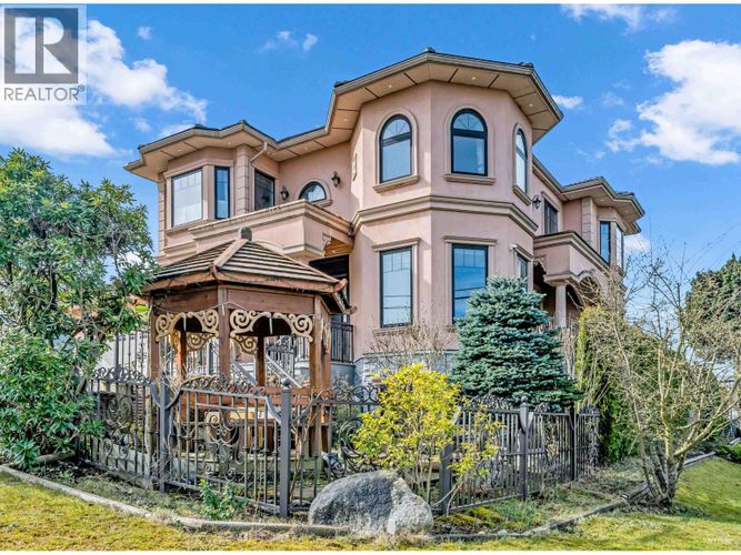 Stunning custom-built corner lot home in Garden Village with breathtaking mountain views, offers luxury, comfort, and unparalleled craftsmanship. Boasting 6 bedrooms and 6.5 bathrooms, with open and spacious layout and high-end finishes, including crown and floor molding, a gourmet kitchen with top-tier Thermador s/s appliances, a sweeping spiral staircase, HRV, A/C, 8-speaker music system and an 8-camera security system. Two bedroom ensuite in the basement with separated entrance/ kitchen/ laundry. The private, low-maintenance backyard with custom-built gazebos creating the perfect retreat for summer relaxation. 2-car garage plus ample driveway parking. 5 mins walking to bus stops, 15 minutes to Patterson SkyTrain, Quick access to Highway 1. Open House: Oct 26, Sun 2-4 pm. (id:26452)