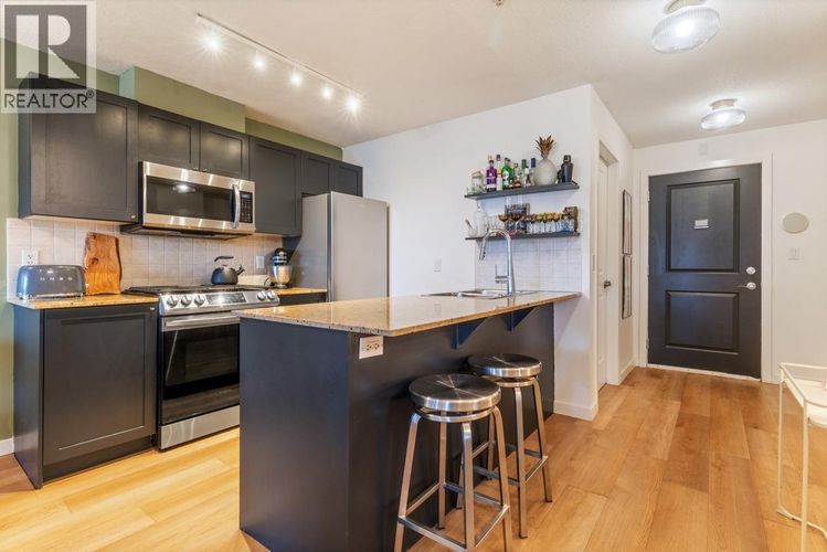 This stylish & functional concrete apartment with incredible storage is nestled peacefully above the treetops, in one of East Van's most vibrant locations! The tastefully upgraded, south-facing layout shines bright with an open plan, glass walls, private balcony & views to the vintage homes surrounded in lush trees beyond. The spacious entry foyer with flex room & charming solarium/office are appreciated by all. Chef's kitchen with granite counters, formal dining space & vibey living room are perfect for parties & relaxing alike. The gorgeous wide-plank floors, designer lighting, newer appliances, in-suite laundry & ensuite bath compliment this unique & luxurious space. +2 MASSIVE STORAGE LOCKERS! Great building in prime, booming location near shopping, parks, transit, beach & PNE events! (id:26452)