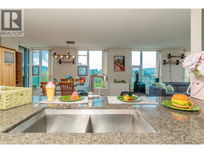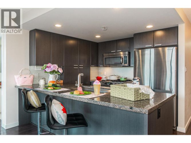 Welcome to this spacious 2 beds & 2 baths corner executive suite at AFFINITY quality built by Bosa at booming Brentwood area! Very big living & dinging areas,full size gourmet kitchen w/stainless steel appliances, full size gas stove, fridge & dishwasher! Newly updated beautiful LG washtower! Big outdoor covered balcony for entertainment! 2 separate-side bdrms provide more privacy & 2 great size baths! Corner unit w/nice airy flow through out! Two favourite side by side parking stalls add much more value & one storage locker in very secured building! Easy access to Brendwood mall shopping, sky train, transit, SFU, BCIT, Costco, highway, Vancouver downtown! Looking for a comfortable urban living life & amazing snow-capped mountains & metropolitan views, this is it!Open Sun Oct 5 from 2-4pm (id:26452)