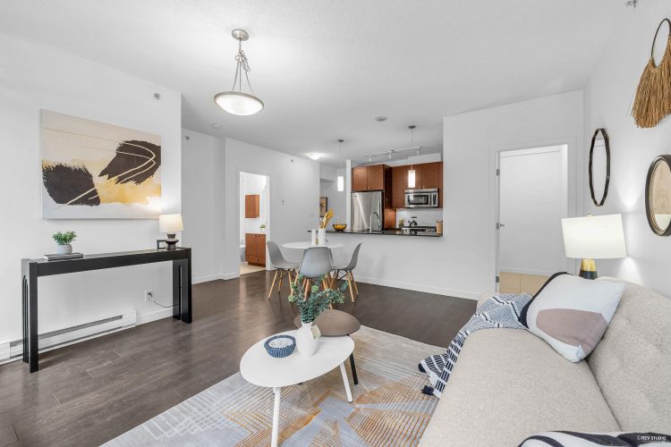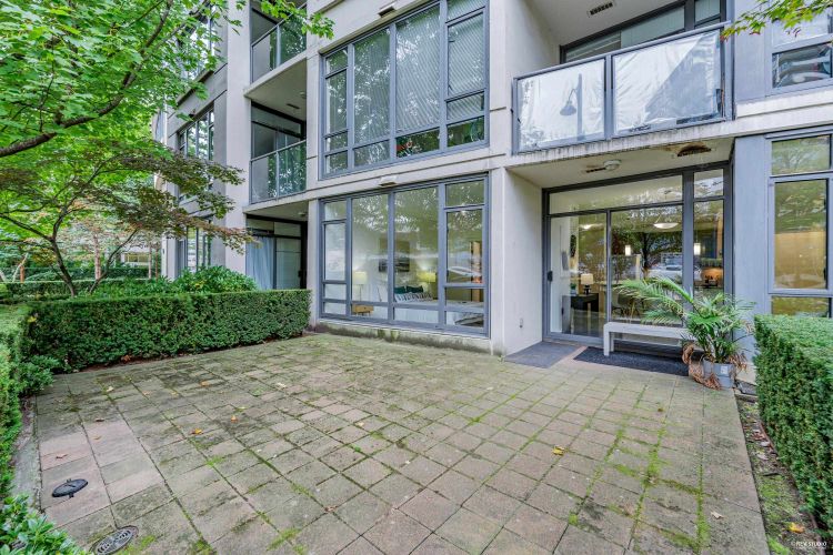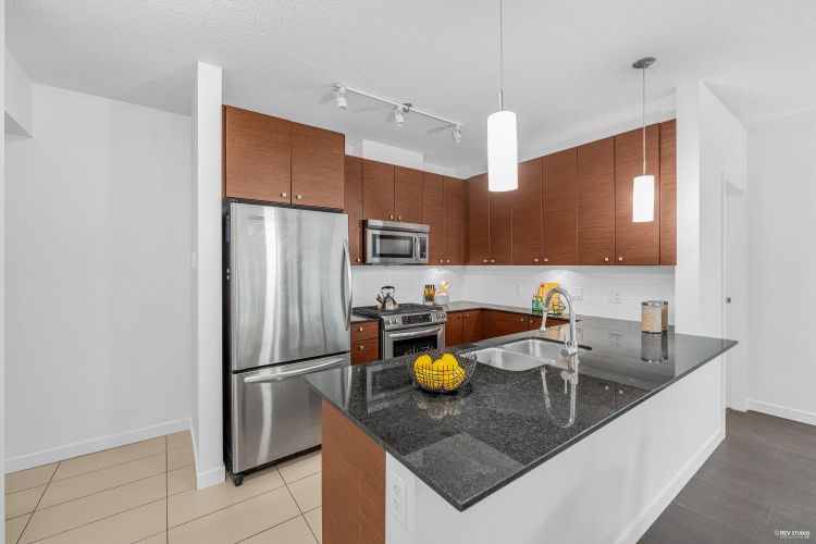 Welcome to The Flo, a sought-after concrete high-rise in the heart of Richmond! This bright & spacious ground-level 1bed home offers a highly efficient 719sf open layout w/ 9" ceilings, quality laminate flooring, & an extra-large private patio w/ direct access to the unit. The modern kitchen features granite countertops, s/s appliances, & a gas range. Enjoy exceptional amenities including an outdoor pool, hot tub, sauna/steam room, gym, media room, club house, children's playground, rooftop terrace, & beautifully landscaped gardens. Perfectly located just steps from Richmond Centre, the Olympic Oval, Canada Line, shops, dining, parks & transit. School catchment: Samuel Brighouse Elem & Richmond 2ndary.OPEN HOUSE Sun Nov 9th 2-4pm