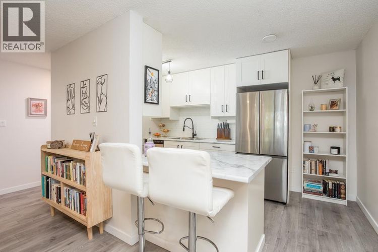 Fully updated Top Floor 1 bedroom + flex space spread across 736 square feet. Expansive layout features a kitchen renovation that increases prep space and extends functionality into the extra large living area. Enjoy peace of mind moving into a fully updated home and well run strata. Low monthly fees include heat and hot water and a live-in caretaker to stay on top of maintenance. New boilers and elevator modernization recently funded. Amenities feature a sauna, gym and social room. Easy access to laundry on each floor. 1 parking (dedicated EV changing spaces available) and extra large storage locker. Convenient walking distance to Highgate Village, Edmonds Skytrain & Edmonds Community Centre. Visit this move-in-ready home and see for yourself. (id:26452)