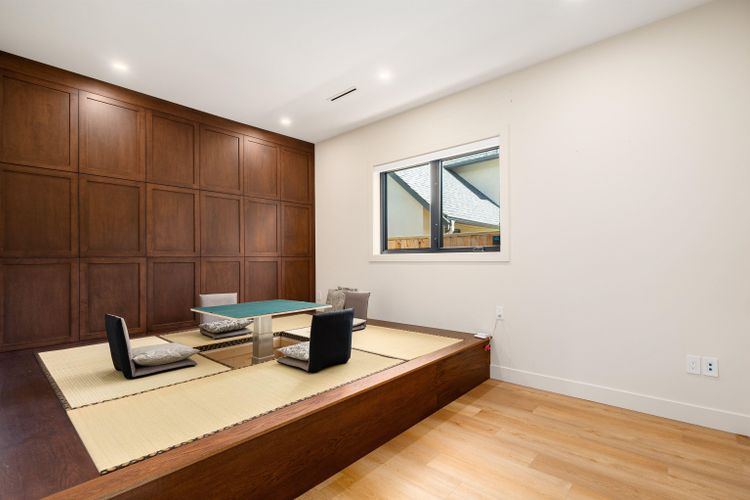 Nestled in the heart of central Richmond. This elegant mansion is just steps from South Arm Community Park. The open concept layout effortlessly flows from the living and dining areas to a covered outdoor patio and a sunny south facing backyard ideal for family gatherings and entertaining. A dream kitchen awaits, featuring an oversized island a separate wok kitchen. The main floor also boasts a serene Japanese-style tatami room, a wine cellar wall, and a stylish wet bar. The luxurious master suite, with its walk in closet and spa like ensuite, is one of five beautifully appointed ensuite bedrooms, each offering privacy and comfort. With a three car garage, EV charging stations, and a gated front yard with additional parking. This home offers both security and convenience. (id:26452)
