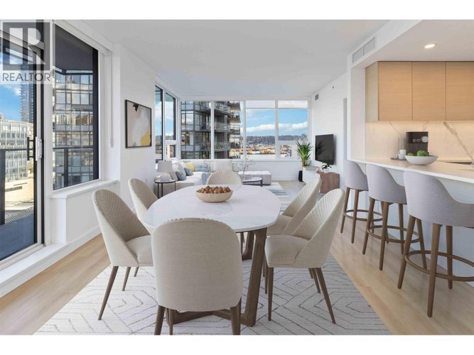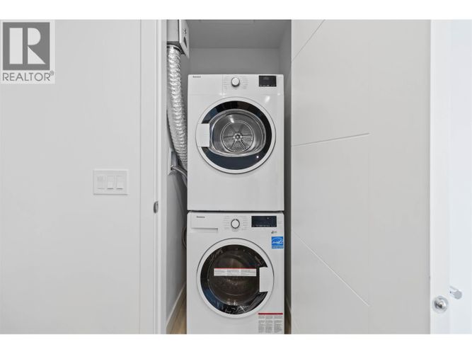The modern city living in this elegant 2 bedroom, 2 bathroom home with 884 sq/ft. of bright, efficient space. Facing northeast, it features floor-to-ceiling windows, wide-plank laminate floors, and in-suite laundry for everyday comfort. The contemporary kitchen boasts Bosch and Blomberg appliances, quartz countertops, a gas cooktop, and a convection oven. Bathrooms are spa-inspired, with sleek quartz and porcelain finishes. Enjoy 1 EV-ready parking stall, 1 locker, and premium amenities, concierge, fitness center, lounge, and rooftop deck with BBQ, fire pit, and hot tub offering stunning city and mountain views. Located in Downtown New Westminster, steps to the SkyTrain, shops, restaurants, and parks. Reach Metrotown in 11 minutes or Downtown Vancouver in under 30 minutes. (id:26452)