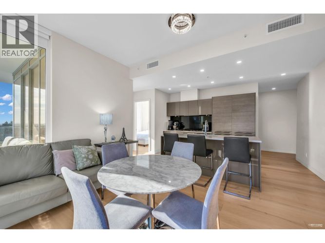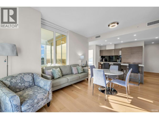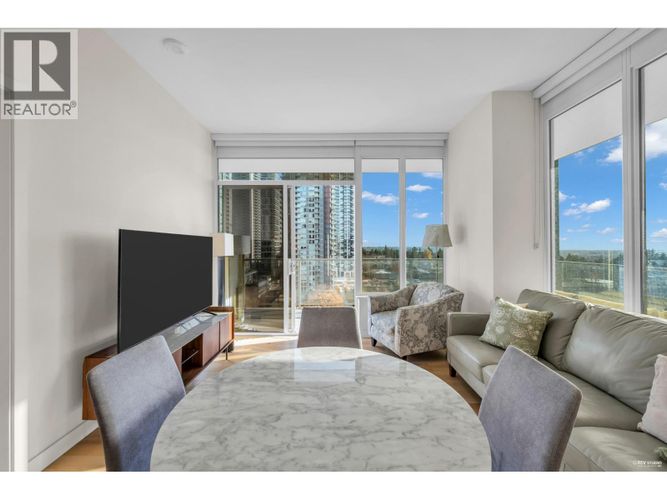 Experience luxury living in this like-new 3-bedroom, 2-bathroom corner residence located in the heart of Metrotown. Positioned on the southeast corner, this home is filled with natural light and features wraparound balconies offering breathtaking panoramic views of the mountains, ocean, and city. The open-concept kitchen boasts cabinetry, integrated Bosch appliances, and is designed so you can enjoy the view from every room. 10-foot ceilings create an enhanced sense of space, while engineered hardwood flooring throughout ensures both elegance and easy maintenance. Enjoy the convenience of 24-hour concierge service and over 11,000 sq. ft. of premium amenities. Just steps to Metrotown SkyTrain Station, Metropolis at Metrotown, the public library, banks, and a wide selection of restaurants. (id:26452)