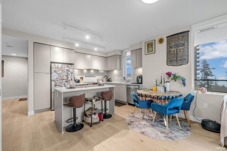 Crescent Court by Liberty Homes, perfectly positioned atop Burnaby Mountain in the heart of the SFU community. This expansive 948 sq ft 2-bed, 2-bath + 365 Sq ft wrap around patio residence offers a functional layout with generous living spaces and large windows that capture natural light throughout the day. The home features sleek contemporary finishes, warm laminate flooring, full stainless steel appliance package, and thoughtfully designed cabinetry. Located on the 7th floor, the unit provides a peaceful setting with a private outlook-ideal for both comfortable living and future investment. Enjoy the convenience of one secured parking stall and one storage locker, along with direct access to campus, transit, dining, and everyday amenities just steps away.