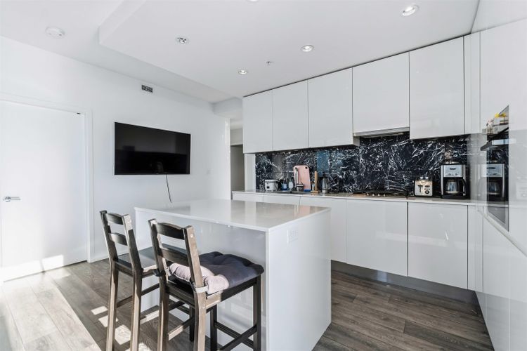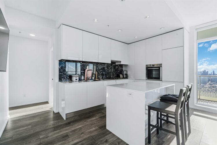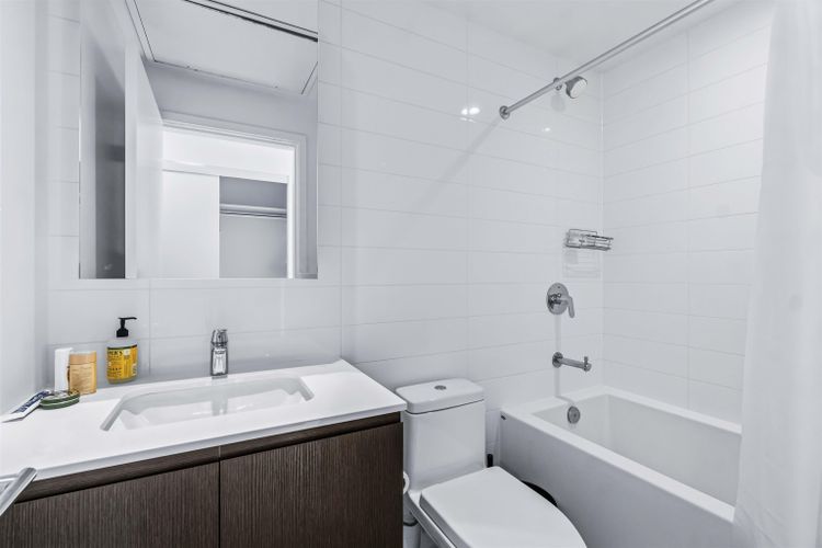 This southwest-facing corner 2 bedroom, 2 bathroom home by Shape Properties offers 777 SF of well-designed living space. The modern gourmet kitchen features quartz countertops and Bosch appliances, while the primary bedroom includes a spa-inspired ensuite. A 384 SF wraparound balcony and floor-to-ceiling windows provide abundant natural light and stunning mountain and city views from every room. Ideally located in the heart of Brentwood, just steps to shopping, transit, and the SkyTrain, with an easy 30-minute commute to downtown Vancouver. Includes 1 secured parking stall, large storage locker, rentals allowed, and access to over 26,400 sq ft of private amenities.