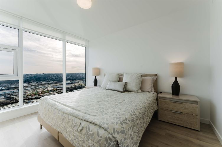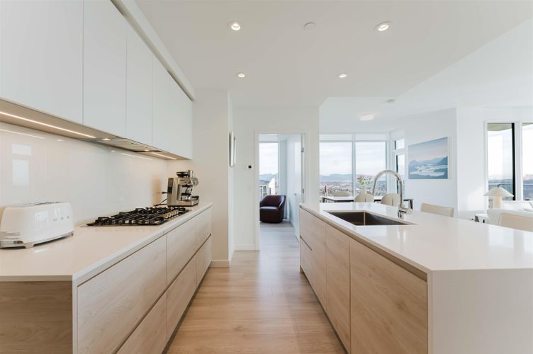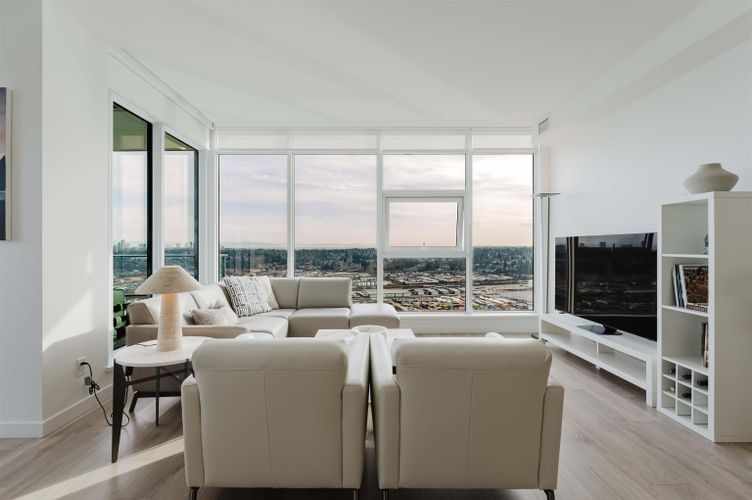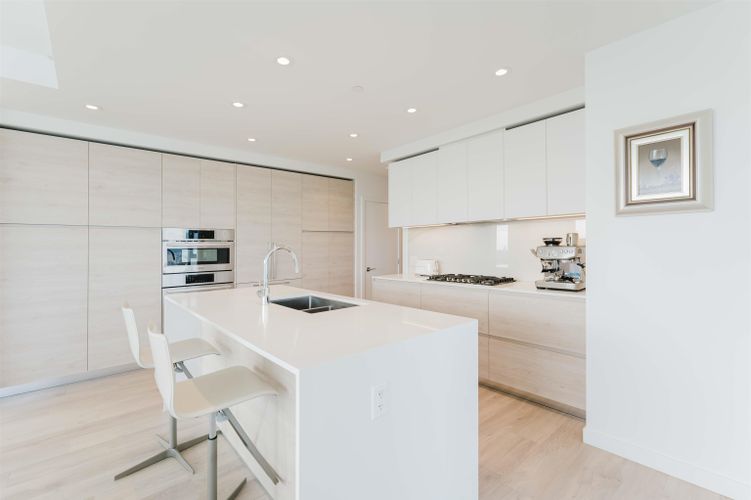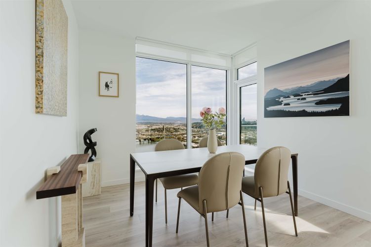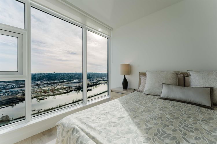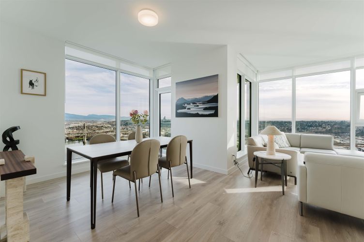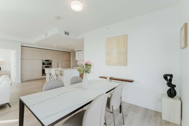 Welcome home to your Sky Collection residence at Pier West, where timeless design meets waterfront living. BOSA-built 2 bed + den, 2 bath home showcases sweeping panoramic views over the Fraser River and refined interiors finished with quartz countertops, a premium Bosch appliance package, and beautifully curated kitchens and baths. The primary suite is a private retreat featuring a walk-through closet and a spa-inspired ensuite with double vanities and a spacious walk-in shower. A second bath offers a deep soaker tub for ultimate relaxation. An exclusive lifestyle with 24-hour concierge, fully equipped Gym, Clubhouse with a Private Dining Room, Outdoor Social Lounge, Sauna & Steam room! 2 Parking (10k EV Charger Installed) and 1 Private Storage Room included. Open Sat and Sun 2-4pm