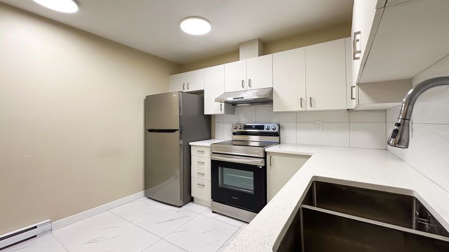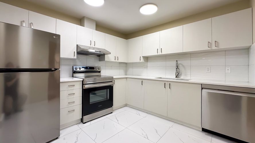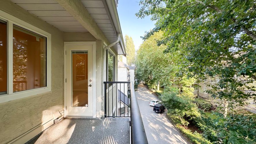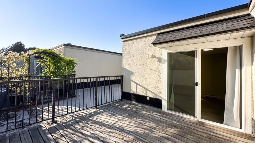 South facing completely renovated spacious 2-level high ceiling 3-bedroom penthouse corner unit with a balcony plus an oversized walk-out roof deck for BBQ & party. New bathrooms with new tiles/toilets/sinks/bath tubs/faucets/heated mirrors, all new light fixtures, new engineering hardwood floor, new kitchen w/ luxury quartz stone countertop/sinks/tiles/faucets & all new stainless steel appliances, this is basically like a brand new home sweet home. New windows, balcony & enter-phone system were changed by strata in 2024 plus newer roof. Steps to Richmond Secondary School and Minoru Swimming Pool/Community Centre. 2 parking stalls and 1 self-contained private locker - this is a real room with your own lockable door. Open house 2-4PM on Mar 8 (Sun), offer by 4PM on Mar 10 (Tue).