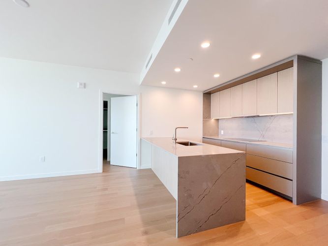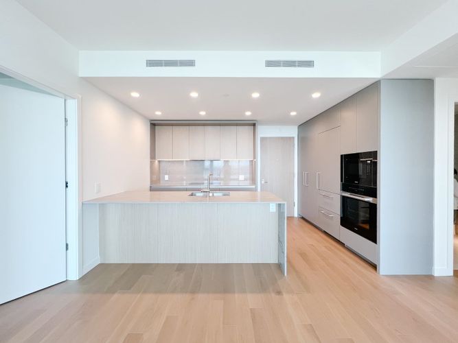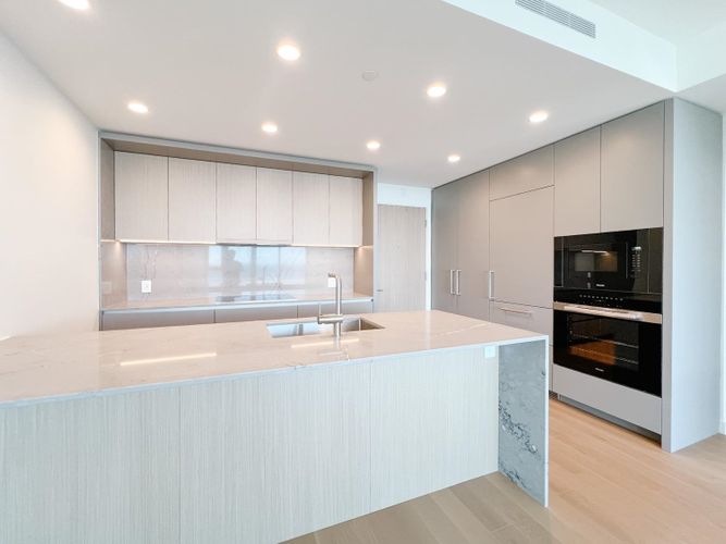 This spacious two-bedroom, two bathroom condo offers approximately 944 sq. ft. of beautiful interior space designed for both comfort and entertaining. Perks include hardwood floors throughout, a stunning kitchen with ample storage, Miele appliances (including a wine fridge!), quartz countertops, in-suite laundry, and endless panoramic views. Bedrooms are located on opposite sides of the unit making this ideal for those needing a bit of privacy whether for visiting guests or work from home opportunities. The unit is air conditioned ensuring year-round comfort, while an extra large 329 square foot private patio extends your living space outdoors in the dryer months – an ideal setting for morning coffee or evening unwinding.