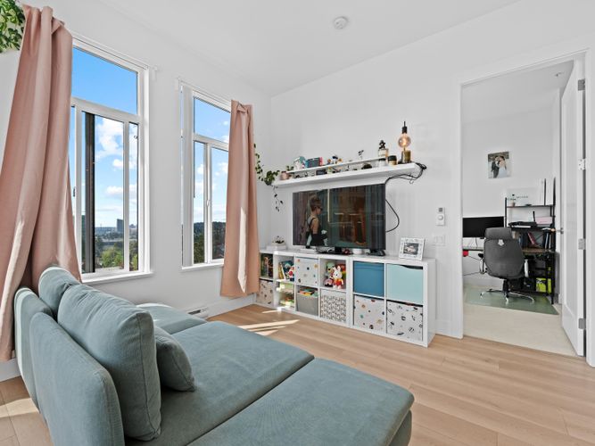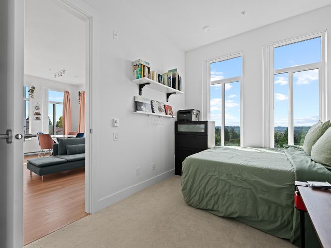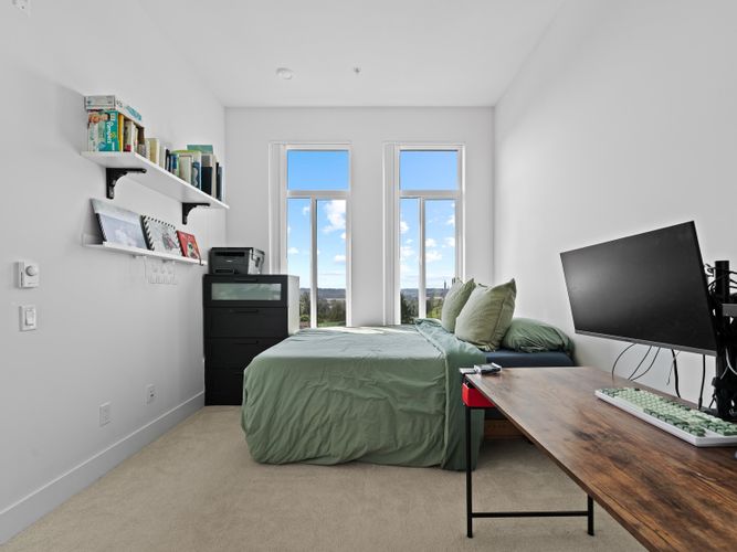 Penthouse living with sweeping southern views at ALLISON by Mosaic. This bright 928 sq ft corner residence features soaring 10’ ceilings, expansive windows and a smart 2-beds, 2-baths split floor plan for comfort and privacy. Open-concept living, dining and kitchen area flows seamlessly to a private deck — perfect for relaxing or entertaining. Built in 2023, the unit showcases Mosaic’s signature craftsmanship and modern finishes. Residents enjoy excellent amenities including fitness centre, outdoor dining areas and a children’s play space. Exceptional location just steps to Evergreen Extension SkyTrain, with easy access to Lougheed Town Centre, SFU, parks and golf. Complete with 2 parking stalls (1 EV ready) and locker. Rare top-floor corner opportunity in a sought-after community!
