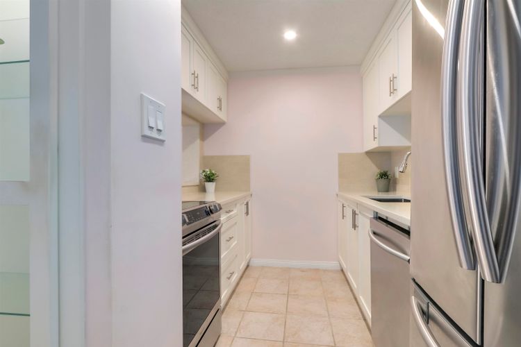 Nicely updated top-floor unit in Stornoway featuring 2 bedrooms and 2 full bathrooms. This bright home offers a sunny south exposure, filling the space with natural light. Located in a quality complex with 4 well-maintained buildings on 4 acres of beautifully landscaped grounds. The strata is pro-active and well managed, with updated elevators, new windows, and balconies. The suite features a spacious living and dining area, new kitchen with updated countertops, stainless steel appliances, laminate flooring, and an electric fireplace. Sliding patio doors lead to a large private balcony, perfect for relaxing. The primary bedroom includes a rarely available en-suite bathroom with shower, and both bedrooms feature new carpeting. in-suite laundry, secured parking. OPEN SUN MAR 22, 2-4pm