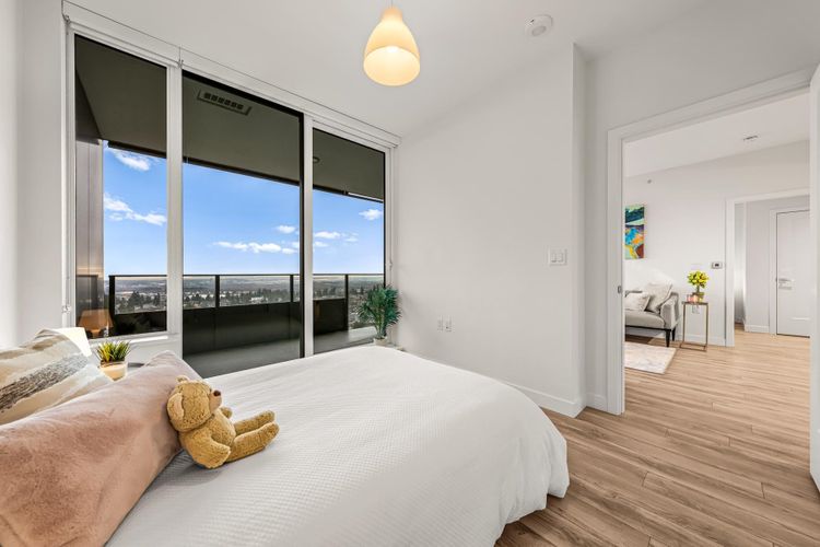 Welcome to POLARIS at Metrotown. This bright south-facing 2 bed, 2 bath home offers unobstructed panoramic views from Mount Baker to the ocean, spanning South Surrey, White Rock, Tsawwassen, Richmond, and Vancouver. Enjoy the scenery from a 227 sqft. balcony and a light-filled interior with 9’ ceilings and wide-plank flooring throughout. The gourmet kitchen features Italian-crafted cabinetry, Miele appliances, and quartz countertops with full backsplash. Spacious laundry room with side-by-side washer/dryer. Amenities include a 10,000 sq.ft. courtyard, fitness centre, golf simulator, guest suite, games & meeting rooms, and a party lounge with BBQ terrace. Steps to Metrotown, SkyTrain, shopping, dining, groceries & daily conveniences. Complete w/ 1 parking + locker. OPEN: Sat Mar28th @2-4PM.