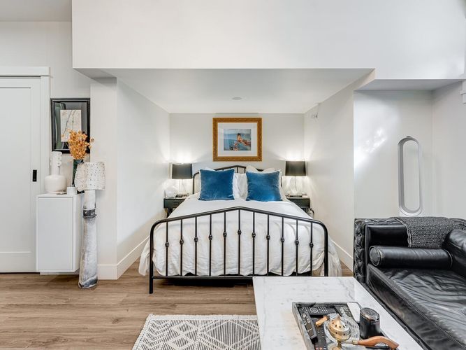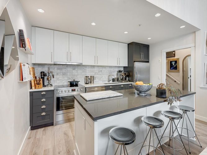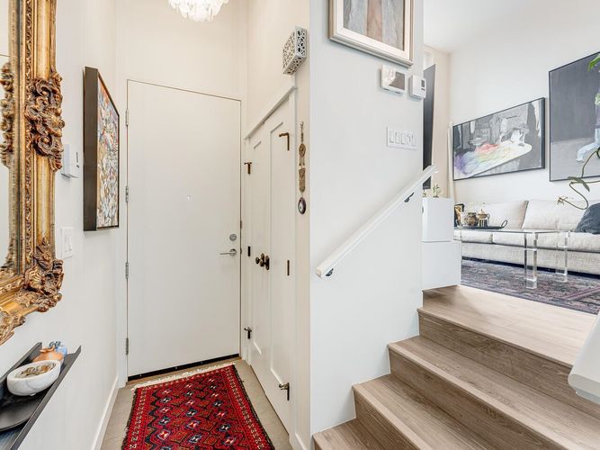 Immaculate boutique 2 bed 2 bath concrete townhome with 11 to 14 ft ceilings and floor to ceiling windows overlooking Trout Lake Park & Trout Lake Community Centre. Ideally located and just minutes to vibrant cafés, dining, and shops of Commercial Drive. Short walk to Skytrain. This bright open concept home is designed for comfortable living and entertaining, featuring quartz and marble countertops, marble tile & stainless steel appliances. Secured parking, bike locker & storage. Upgrades: anti shatter glass, wired alarm system, recessed LED lighting with statement fixtures, custom floor to ceiling drapery and privacy shades, built in media cabinet, extensive custom storage & hot water tank 2021. Pet Friendly!