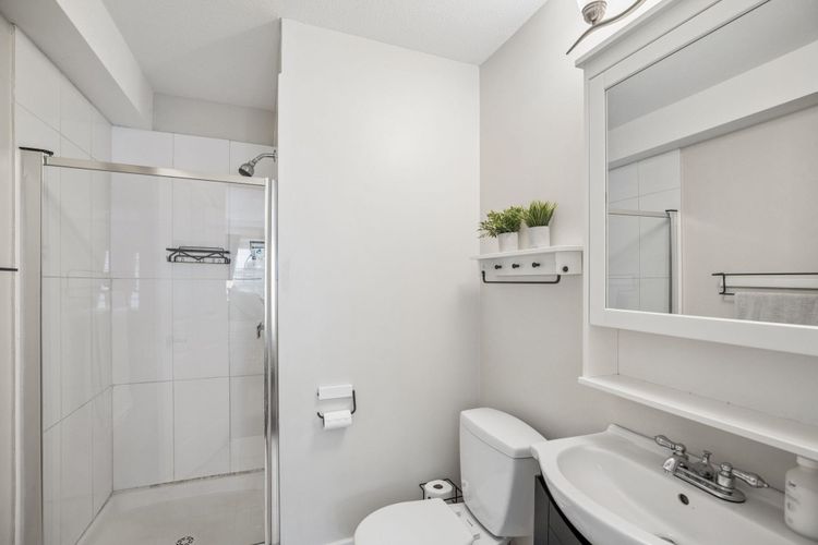 Welcome to this well-appointed 2 bed, 2 bath ground-level townhome in the desirable Meadow Vale community. Offering over 1,000 sq ft of functional living space, this home features an open-concept layout with spacious living and dining areas ideal for everyday living and entertaining. The updated kitchen provides ample cabinetry and counter space with seamless flow to the main living area. The oversized primary bedroom includes an ensuite, while the second bedroom is perfect for a growing family, guests or a home office. Enjoy a rare 347 sq ft fully fenced private patio, ideal for outdoor dining, pets, or gardening. Complete with one single car garage + one parking stall and one RV/boat parking, all conveniently located near parks, schools, shopping, transit, and commuter routes.
