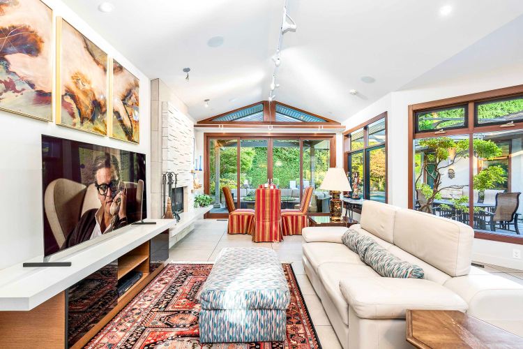 A masterpiece of modern luxury design, this 4,500 SF (Plus garage 488 SF) rancher by architect Trevor Euley blends architectural elegance with resort-style living. Set on a 14,400 SF impeccably landscaped lot, it features a soaring atrium living room, luminous dining with wine lounge, and a European walnut kitchen with state-of-the-art appliances. Accordion glass walls open to outdoor dining, kitchen, fireplace lounge, pool and spa. The private primary wing, past a serene zen garden, offers a spa-inspired ensuite and dressing area. A separate office with deck and flexible lower level for gym, nanny or media complete this rare offering near Capilano Golf, Hollyburn Club, Park Royal & top schools.
