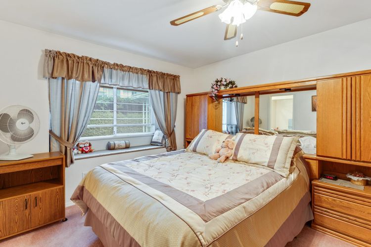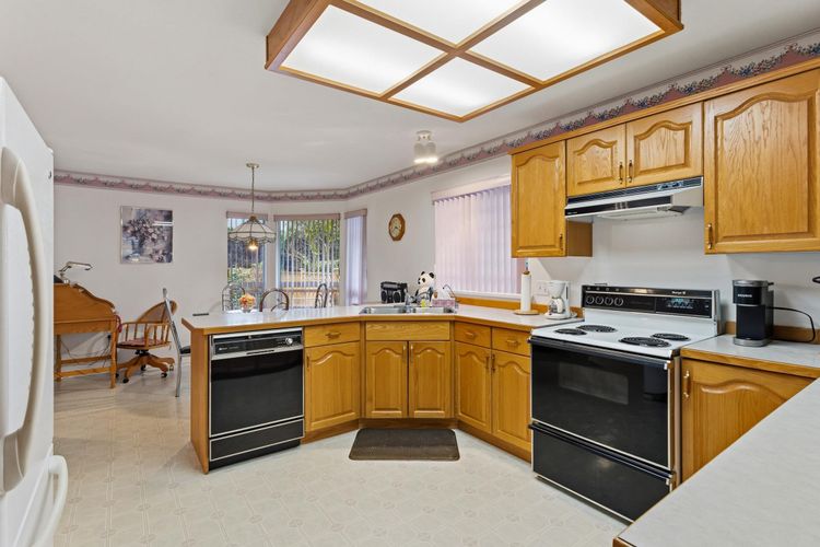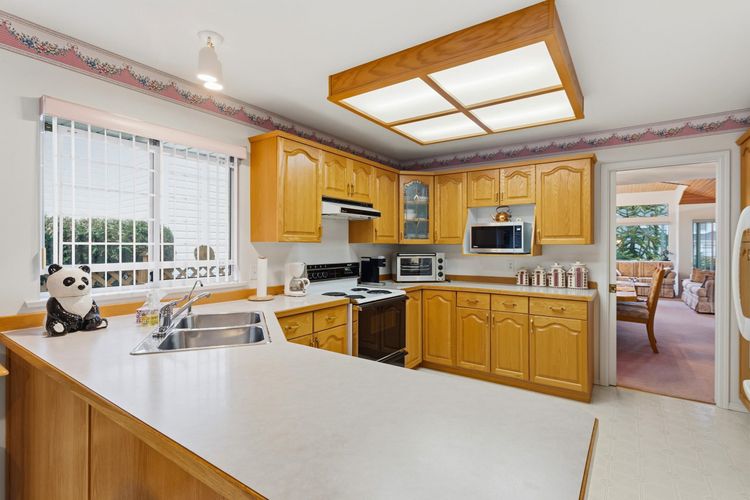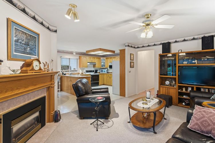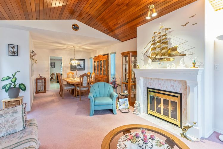 West Side Maple Ridge Tucked on a quiet cul-de-sac in Northwest Maple Ridge's most desirable pocket, this single-level rancher sits in one of the West Side's most sought-after locations — close to schools, shopping, Golden Ears Bridge, and every amenity the area offers, without the noise or traffic. Inside, a vaulted wood-panel ceiling and marble-surround gas fireplace set the tone. Skylights bring natural light deep into the home, rounded drywall corners add a timeless softness, and the generous primary bedroom features a private jet soaker ensuite. Step outside to a large covered patio, fully fenced yard, and a separate storage shed — room for everything. Double garage with interior access plus extended concrete driveway for your RV or boat. Cared for properly and ready for you