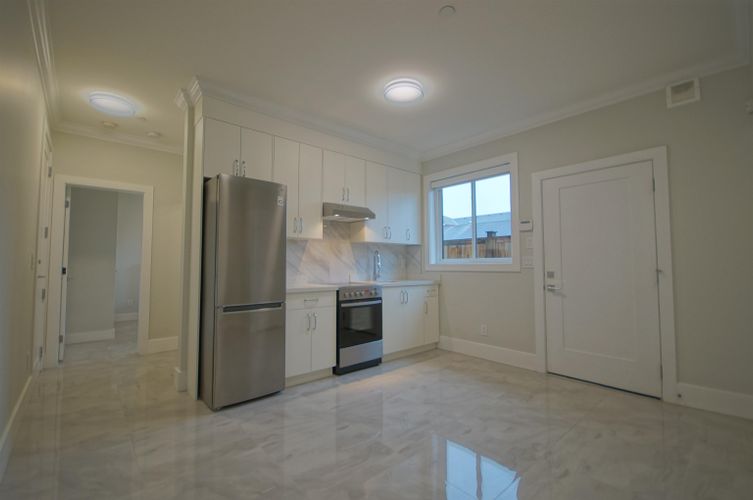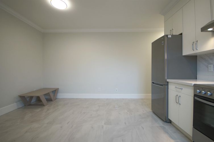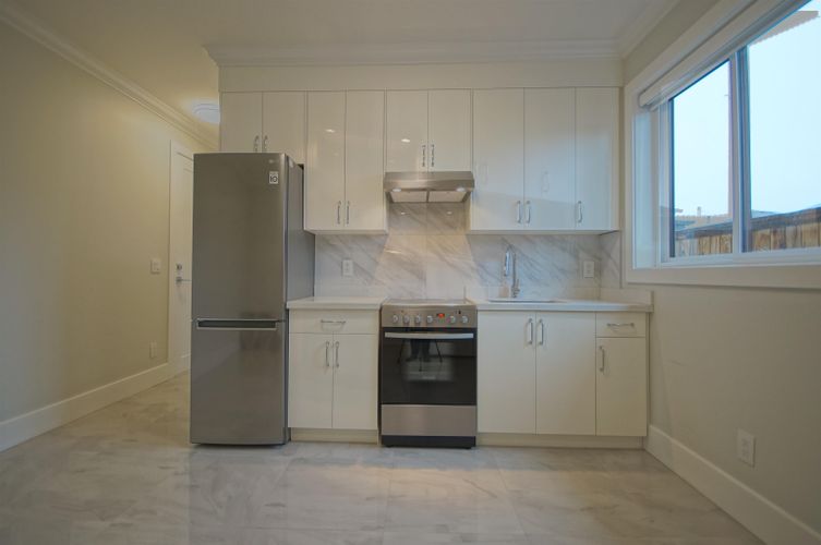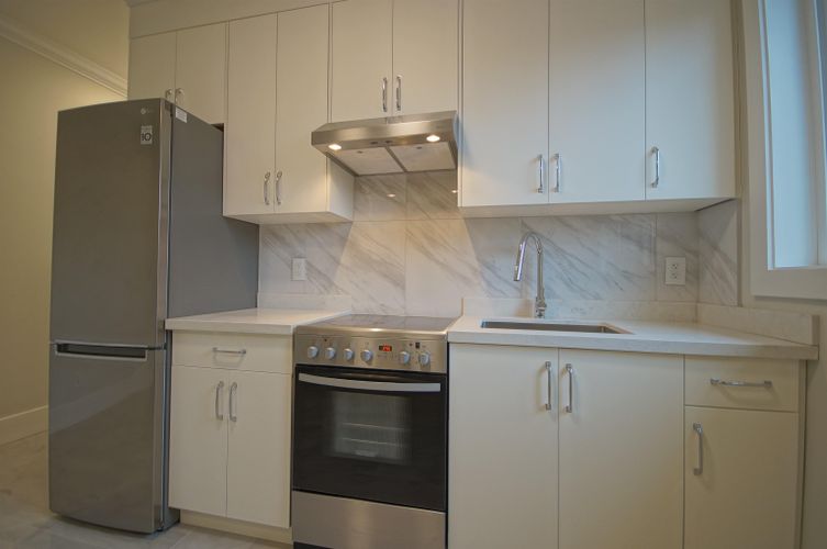 Newer ground-floor suite of approximately 390 sq. ft., tucked away in a quiet residential pocket! Upon entry, you’ll find a sleek single-wall kitchen featuring a stainless-steel fridge, 4-burner electric range, white cabinetry, and stone countertops. Adjacent to the kitchen is a comfortable living area with a closet and in-suite laundry conveniently nearby. The spacious bedroom easily accommodates a queen-sized bed with nightstand, while the 4-piece bathroom includes a tub with glass sliding doors. The suite is finished with tile flooring throughout and 8’11” ceilings, offering a bright, open feel. Rent includes all utilities & internet.