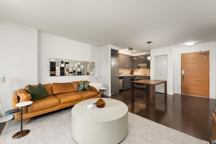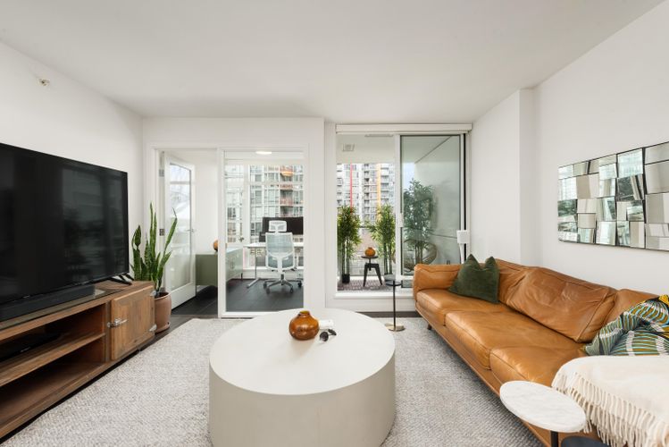 Discover a bright and spacious 1-bedroom plus den residence at COSMO by Concord Pacific, featuring a covered balcony and excellent storage. This home offers a rare, highly functional floor plan with a generously sized den for added flexibility. The south-facing exposure captures beautiful city views with a glimpse of False Creek water views. Enjoy floor-to-ceiling windows, a well-proportioned living and dining area, and a modern kitchen with integrated appliances and quality finishes. Includes one parking stall. Ideally located in the heart of downtown Vancouver, just steps to Costco, BC Place, Rogers Arena, and SkyTrain. Residents enjoy premium amenities including a fully equipped gym, indoor pool, bowling alley, rooftop BBQ area, hot tub, concierge service, and more.