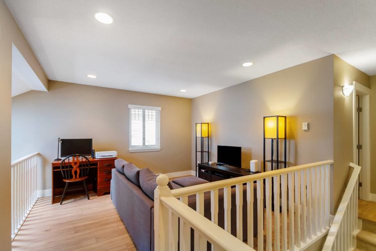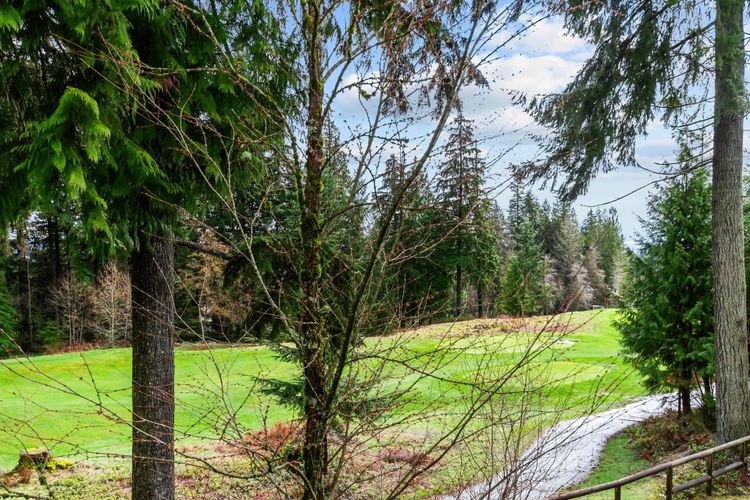 Welcome to Pinnacle Ridge, Luxury home directly backing onto GOLF COURSE. This is an elegant, spacious, & thoughtfully renovated home. There are newer laminate floors, new carpet & paint and high end custom blinds. A large, bright foyer welcomes you into a modern, open floor-plan, with a unique sunken living room/family room divided by a double-sided fireplace. The updated kitchen has a new fridge & dishwasher with new backsplash, shaker cabinets & separate eating area. Upstairs offers three generous bedrooms including a large primary suite with en-suite bath and walk-in closet. An open loft-like Flex Room is ideal as a tv room or office. Convenient upstairs laundry with sink. Amazing back patio space offers mountain and golf course views. Super peaceful and serene living