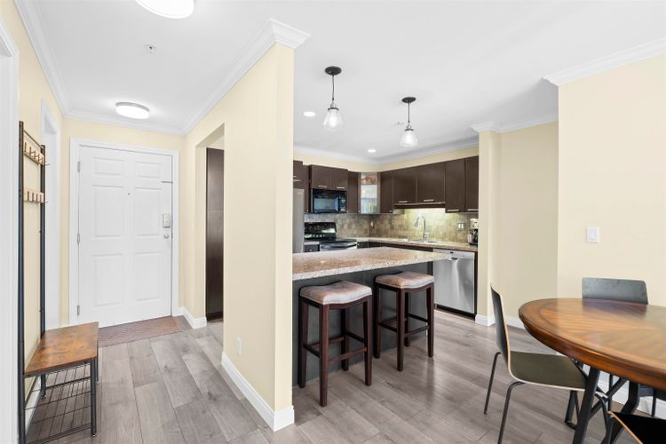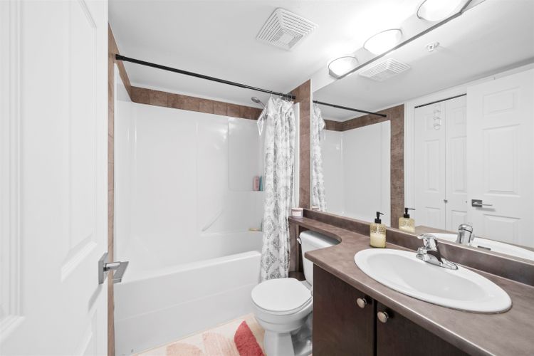 Discover this spacious 2-bed, 2-bath condo at Creekside Estate in Langley! The open-concept layout allows natural sunlight to pour in, providing a spacious living area where you can relax, entertain, or work from home. The kitchen features stainless steel appliances, granite countertops, a full stone backsplash, laminate flooring, and a built-in microwave. Recently updated appliances, new flooring, fresh paint, new washer and dryer and updated fixtures. Enjoy a generous balcony that offers the perfect space for unwinding or socializing with friends and family. Within walking distance to nearby schools, parks and the upcoming skytrain, and a few minutes’ drive from Willowbrook Shopping Centre.