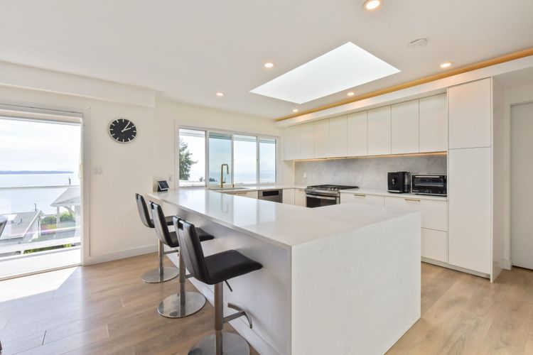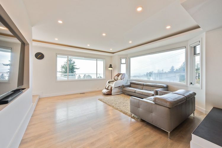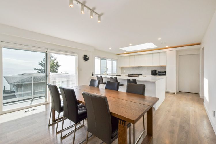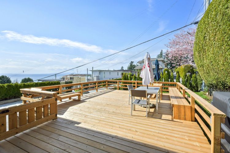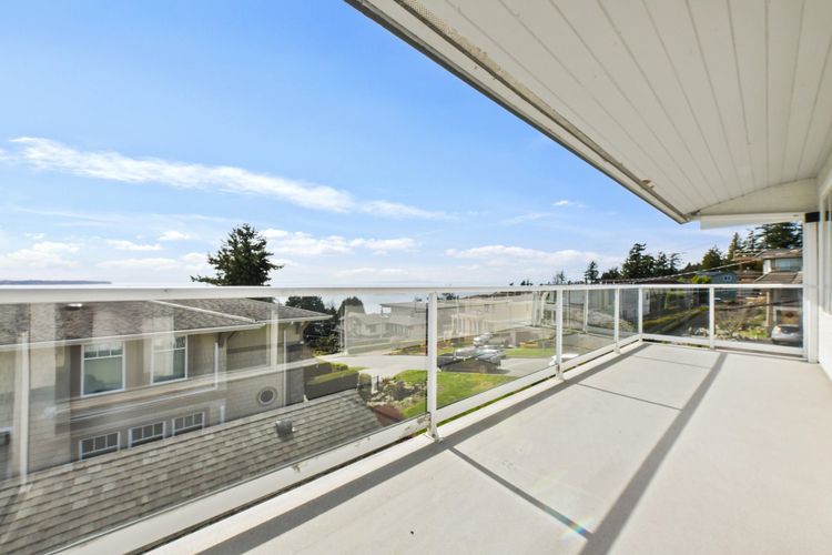 Breathtaking panoramic ocean view from Mount Baker to Semiahmoo Island IN WHITE ROCK! Stunning 2 storey with south facing patio. Living and dining room connects to luxurious and spacious deck and all enjoy this great view. 7050 sq. ft beautiful lot sits in a quiet street, features 4 bedrooms and 3 baths. House is in excellent updated condition. Located in the Bayridge Elementary and Semiahmoo Secondary catchments . Easy to show! Don't miss this opportunity to get a fantastic ocean view home.