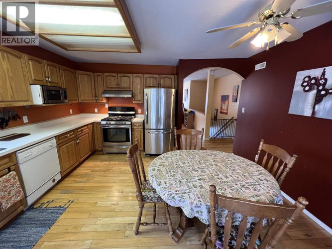 Tucked away on a quiet, tree lined crescent backing onto a walking trail, this charming 5 bed, 3 bath home offers space, comfort and flexibility. The bright living room features a sunny bay window, cozy gas fireplace and gorgeous hardwood floors that carry throughout the home. The kitchen opens to a raised deck perfect for outdoor dining, with a lower deck offering built in seating. The spacious main bedroom features a walk in closet and full ensuite. A den can double as 5th bedroom, while the ground level provides walk-out access and kitchen already in place - ideal for guests or separate suite. Recent landscaping and shingles in 2025 add value. Complete with double garage, big bonus workshop, RV parking and full concrete crawl space. This is a fantastic family home in a lovely location! (id:26452)