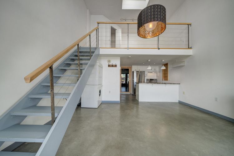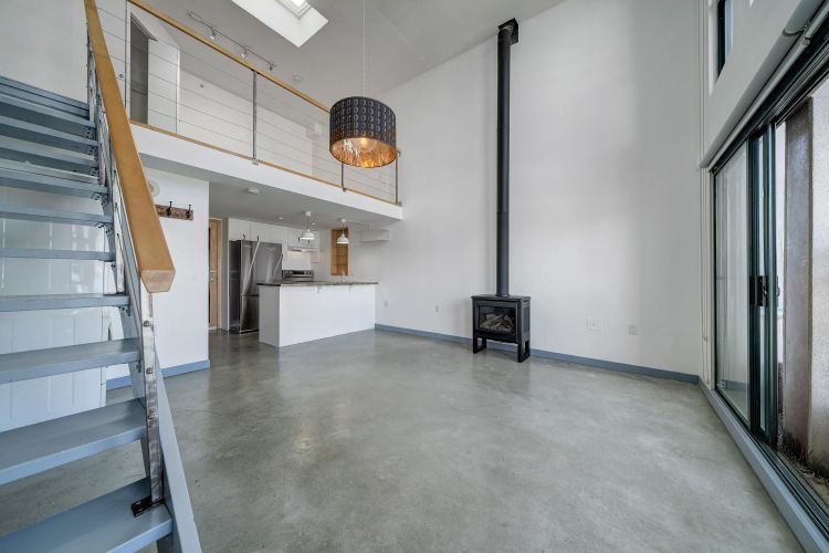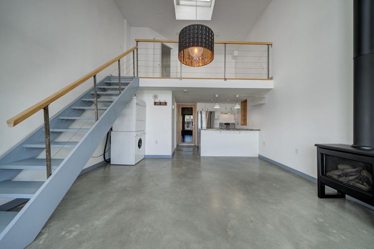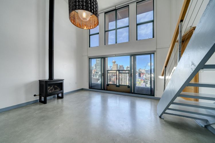 New York-style penthouse loft in the Van Horne building - Gastown. Outstanding creative space with concrete floors, 16" ceiling, and panoramic views of the water, mountains, and the city. The space features large floor-to-ceiling windows and a constantly moving picture of the world outside - it is light and bright. There is a Juliet balcony with double sliders, built-in shelving, a freshly painted kitchen with newer appliances, in-suite laundry, plus a free-standing gas fireplace for ambience. The upper loft is 188 SFT and can be used as a bedroom or creative space with a sizable walk-in closet. The Gastown location is vibrant, with access to amazing restaurants, bars, cafes, and boutique shops. You are also steps from parks such as Crab Park, Dr. Sun-Yat Sen Gardens, and the Canada Line.
