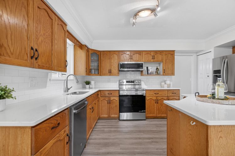 Welcome to this wonderful family home in the highly sought-after West North Maple Ridge community of Alvera Park! Sit. on a generous 7,221 sqft lot, this 2-storey home offers 3 bedrms & 3 bathrms, perfect for growing families. Thoughtfully updated throughout, the home features a beautifully renovated kitchen with quartz countertops, stylish backsplash, new sink, faucet, & a new stove. Enjoy the comfort of updated bathrms, new flooring in the kitchen & family rm, and all new light fixtures. The inviting family rm also features a cozy gas fireplace, creating the perfect space to relax & unwind. Additional upgrades include a new heat pump & skylight. Step outside to a covered deck accessible from the family rm & kitchen. Mins from Elementary/Secondary schools, Golden Ears bridge, Lougheed Hwy