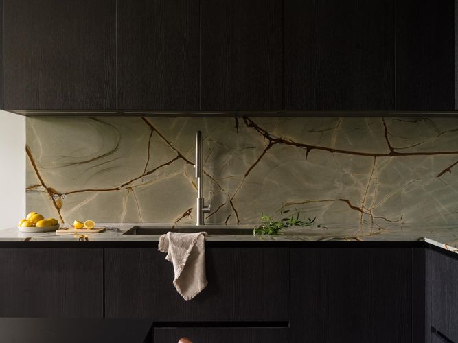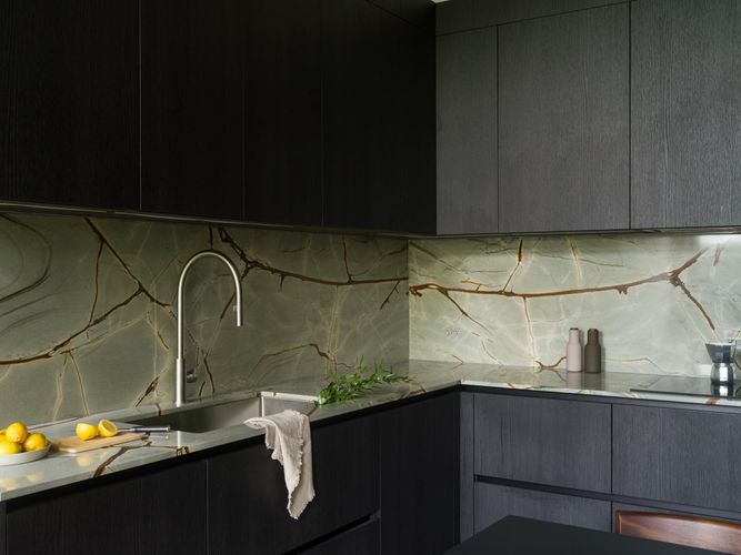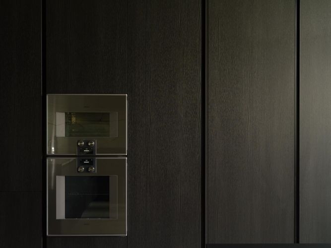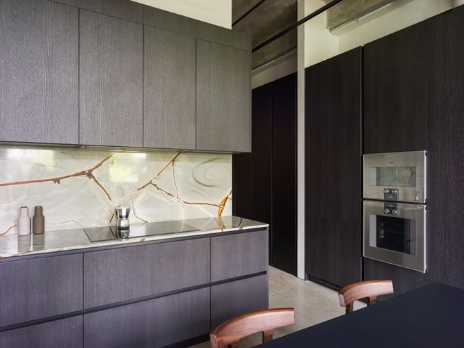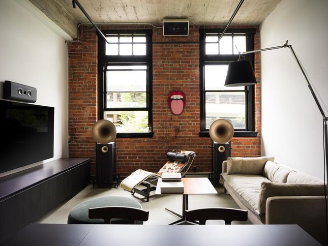 The Designer’s Loft – A Heritage Warehouse Reimagined in Vancouver Set within the historic Crane Building, this reimagined loft reflects a refined dialogue between heritage character and contemporary design. Completed in 2024 by Kipp Design Build, the nearly 800-square-foot residence has been thoughtfully reconfigured to maximize function and flow. A bold black Italian kitchen by Habitat, paired with Gaggenau appliances, anchors the living space, while bespoke wardrobes by Inform Interiors provide seamless storage. The bathroom offers a calm, spa-like retreat with stone, walnut, and a steam shower featuring fixtures by Gessi. Polished concrete floors, exposed brick, and 12-foot ceilings are softened by warm light from the west-facing windows—an elevated expression of urban living.