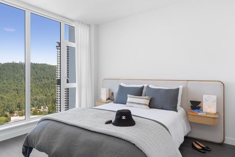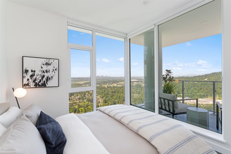 Live at Highpoint, Coquitlam's tallest tower and newest landmark address. This spacious 3-bedroom corner home offers over 1,000 sq. ft. of thoughtfully designed living space. A bright, fresh colour scheme creates a crisp and contemporary feel throughout. The open-concept layout features a modern island kitchen with pantry, full-size appliances, and sleek white cabinetry with soft-close finishes. Enjoy year-round comfort with VRF heating and cooling, plus sweeping views of the city skyline, Burnaby Lake, and SFU Mountain. Highpoint offers 12,000+ sq. ft. of luxury amenities, including a concierge, Fitness Centre, SkyLounge, Social Lounge, guest suites for overnight visitors- all just steps from Burquitlam SkyTrain and everyday conveniences. Move in today!