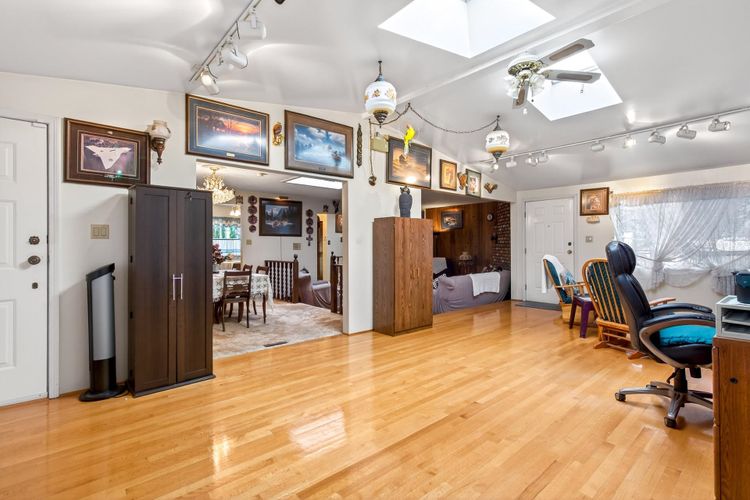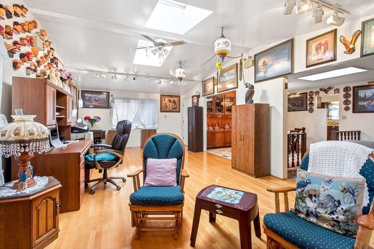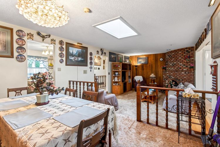 First time on the market! Come buy this well- maintained, character-filled home on a prime corner lot with stunning views of the Gold Ears mountains. Situated on a gentle slope, this property features two driveways (lane and street access), a large tandem garage, and a beautifully cared-for lawn. Inside, the home offers two kitchens -- perfect for extended family or rental income potential -- along with wood-burning fireplaces on both levels. Recent updates include newer flooring downstairs, select bathroom improvements, vinyl windows, air conditioning, and a high-efficiency furnace. A spacious addition provides extra living space while preserving the home's original charm. CALL NOW to VIEW this.