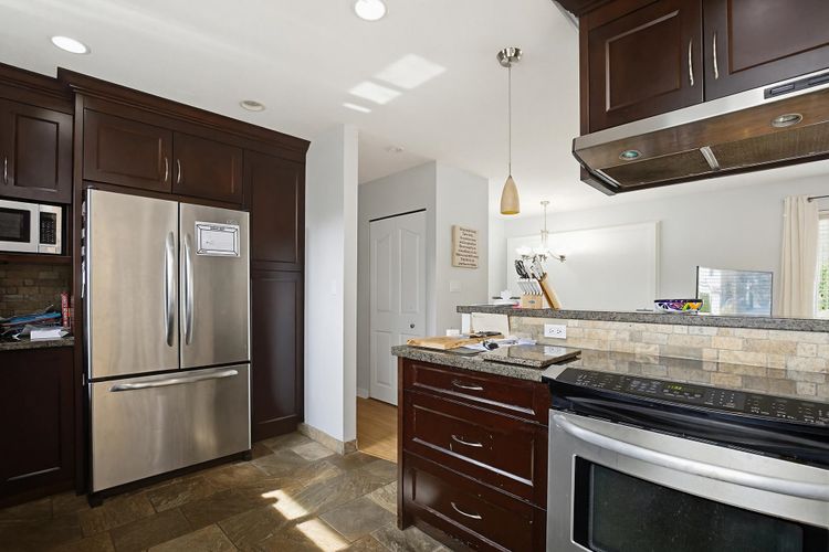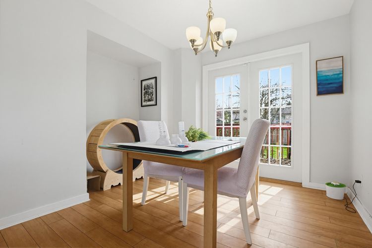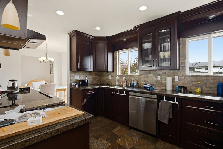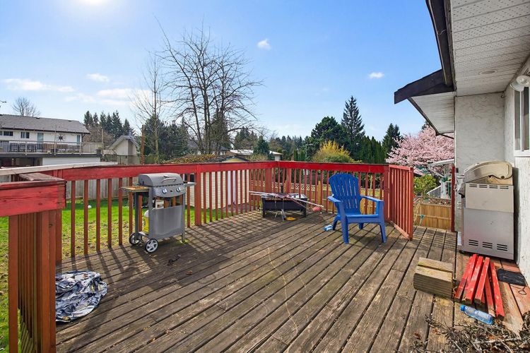 Well-located split entry home on a large lot close to parks, schools and recreation. Functional 3 bed, 3 bath layout with great flow and room to add value over time. Updated kitchen with stone counters, dark cabinetry and stainless appliances, open to the living room and ideal for entertaining. Dining area features French doors leading to a large deck overlooking a private yard. Upstairs offers a primary with 2-piece ensuite plus two additional bedrooms. Downstairs includes a large rec room with fireplace along with laundry, bathroom, storage and flex space with potential for guests or in-law setup.