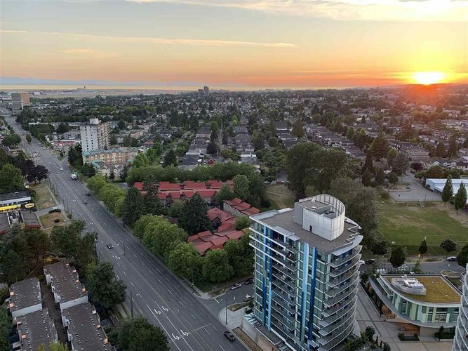 Rarely available west-facing 1-bedroom on the 30th floor at Marine Gateway (North Tower). This well-designed home offers a functional layout with a spacious balcony, perfect for outdoor living and enjoying breathtaking sunset views over the city, water, and mountains.Features include an open-concept kitchen, integrated fridge and dishwasher, laminate flooring throughout, in-suite laundry, and a Kohler soaker tub with quality fixtures. Enjoy full amenities including a caretaker, party lounge, meeting rooms, dining room, playroom, and outdoor terrace with BBQ. Unbeatable location—just steps to the Canada Line station, bus loop, T&T Supermarket, Cineplex, banks, restaurants, and everyday conveniences. One parking & storage locker are included.