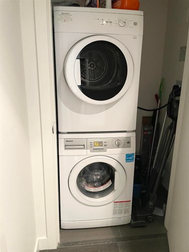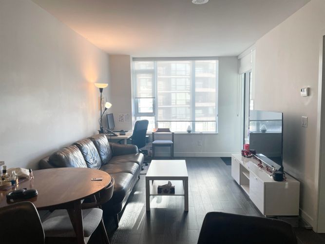 Cadence by Cressey Developments. This 575 sq ft 1-bedroom home features engineered hardwood flooring and a signature Cressey kitchen with integrated double refrigerator, gas cooktop, and premium stainless steel appliances. Enjoy year-round comfort with air conditioning and a spa-inspired bathroom with heated marble tile floors. The bright southeast-facing unit includes 1 parking stall & 1 storage locker. Residents have access to exceptional amenities, including a multi-purpose sports court, steam sauna, and an expansive rooftop garden with clubhouse and BBQ area. Ideally located steps to the Olympic Oval, T&T Supermarket, Shoppers Drug Mart, TD and BMO, fitness centres, shops, restaurants, and professional services. Walking distance to Lansdowne Mall and SkyTrain.