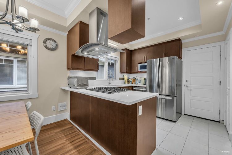 Beautiful corner unit Townhome featuring 3 bedrooms and 2.5 bathrooms. This quiet, bright, and spacious home offers an open-concept layout with a modern kitchen, quartz countertops, sleek contemporary cabinetry, and in-floor radiant heating throughout. Enjoy the efficiency of a tankless boiler and the comfort of generous outdoor spaces, including a large sundeck and patio—perfect for summer BBQs with family and friends. Low monthly strata fees add to the value. Ideally situated in one of Richmond's most family-friendly neighbourhoods, located just minutes from transit, shopping, restaurants, parks, and within walking distance to School. The property is located in the quiet side of the complex, not facing No.4 Rd.